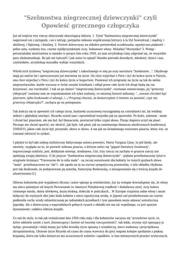 Mario Vargas Llosa, "Szelmostwa niegrzecznej dziewczynki" ("Travesuras de la niña mala"), tł.
