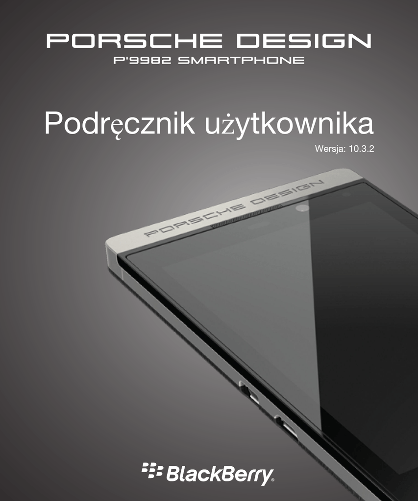 PORSCHE DESIGN P'9982 Smartphone Podręcznik użytkownika Wersja: 10.3.2 Opublikowano: 2015-06-22 SWD-20150622131148424 Spis treści Konfiguracja i podstawowe funkcje......................................................................................................... 5 Nowości w tym wydaniu............................................................................................................................... 5 Rzut oka na urządzenie.................................................................................................................................7 Czym różni się urządzenie BlackBerry 10 OS? ............................................................................................ 9 Ikony powiadomień.....................................................................................................................................14 Ikony menu................................................................................................................................................. 15 Konfigurowanie urządzenia.........................................................................................................................16 Korzystanie z gestów..................................................................................................................................20 Zaawansowane interakcje.......................................................................................................................... 26 Personalizowanie urządzenia......................................................................................................................28 Zmiana urządzeń.........................................................................................................................................29 Technologia BlackBerry ID — informacje...................................................................................................39 Telefon i połączenia głosowe.................................................................................................................. 43 Telefon........................................................................................................................................................ 43 Powiadomienia i dzwonki........................................................................................................................... 51 Poczta głosowa.......................................................................................................................................... 57 BlackBerry Hub oraz e-mail.....................................................................................................................61 BlackBerry Hub oraz e-mail........................................................................................................................61 joyn na urządzenia BlackBerry 10 ..............................................................................................................89 Multimedia.................................................................................................................................................93 Zmiana głośności multimediów................................................................................................................... 93 Obsługiwane rozszerzenia nazw plików audio i wideo, formaty i kodeki................................................... 93 Rozwiązywanie problemów: multimedia.....................................................................................................94 Aparat......................................................................................................................................................... 95 Zdjęcia...................................................................................................................................................... 104 Muzyka..................................................................................................................................................... 111 Filmy wideo...............................................................................................................................................115 BlackBerry Story Maker ...........................................................................................................................120 Udostępnianie multimediów..................................................................................................................... 123 Ustawienia............................................................................................................................................... 125 Dostosowywanie ustawień urządzenia..................................................................................................... 125 Aktualizacja oprogramowania urządzenia................................................................................................ 129 Bateria i zasilanie...................................................................................................................................... 131 Połączenia.................................................................................................................................................139 Klawiatura BlackBerry i wpisywanie tekstu.............................................................................................. 167 Język......................................................................................................................................................... 173 Metody wprowadzania na klawiaturze..................................................................................................... 175 Ekran wyświetlania....................................................................................................................................180 Dostępność.................................................................................................................