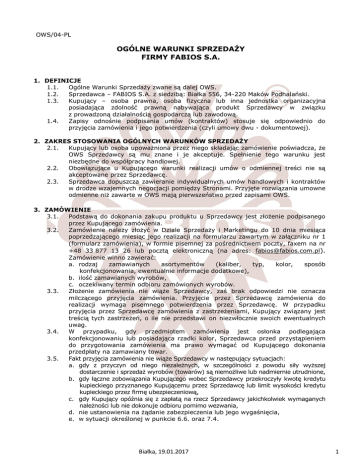 OGÓLNE WARUNKI SPRZEDAŻY FIRMY FABIOS S.A.