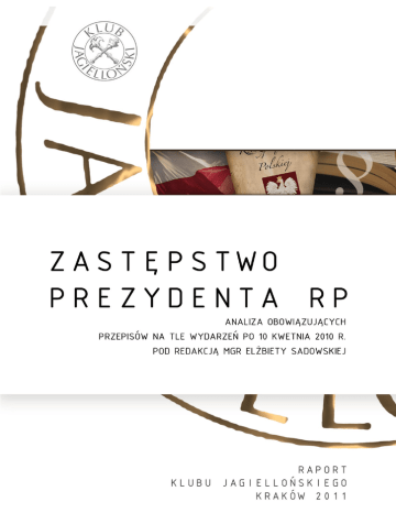 1 Zastępstwo Prezydenta RP Analiza obowiązujących przepisów na tle wydarzeń po 10 kwietnia 2010 r. pod redakcją mgr Elżbiety Sadowskiej 2 Klub Jagielloński Jagiellońskie Towarzystwo Kulturalno-Oświatowe [email protected] www.kj.org.pl Rynek Główny 39/9 30-013 Kraków Redakcja: mgr Elżbieta Sadowska Autorzy: Magdalena Jagła, Agnieszka Kawa, Justyna Olek, Dagmara Podolanko, Grzegorz Płatek, Maciej Pach Korekta: mgr Elżbieta Sadowska Projekt graficzny okładki: Michał Kempa © Copyright by Jagiellońskie Towarzystwo Kulturalno-Oświatowe „Klub Jagielloński” Kraków 2011 3 Spis treści Streszczenie…………………………………………………………………………………………….………………....5 Wprowadzenie…………………………………………………………………………………………………………...7 1. Zastępstwo Prezydenta Rzeczypospolitej Polskiej – uregulowania konstytucyjne………………….....…………………………………………….………………………………….8 2. Zastępstwo prezydenta w uregulowaniach konstytucyjnych wybranych państw……………………………………………………………………………………………………..………..10 3. Instytucja wiceprezydenta……………………………………………………………………….…………13 4. Zastępstwo prezydenta a praktyka ustrojowa………………………………...……………..........15 5. Zakres uprawnień organu wykonującego obowiązki głowy państwa w wybranych krajach………………………………………………………………………………………………………………18 6. Zakres uprawnień Marszałka Sejmu wykonującego obowiązki Prezydenta Rzeczypospolitej Polskiej……………………………………………………………........22 7. Moment przejęcia władzy przez zastępcę prezydenta………………………………………….27 8. Działania podejmowane przez Marszałków Sejmu Bronisława Komorowskiego i Grzegorza Schetynę od 10 kwietnia do 6 sierpnia 2010 roku……..……………...……….29 9. „Karuzela stanowisk”…………………………………………………………………….………………...…33 Zakończenie……………………………………………………………………………………………..………………38 Czym jest Klub Jagielloński?.........................................................................................................................................40 4 Streszczenie W obliczu kwietniowej tragedii w Smoleńsku, w której zginął Prezydent Rzeczypospolitej Polskiej Lech Kaczyński oraz członkowie towarzyszącej mu delegacji, Polska stała się jednym z niewielu państw europejskich, którym przyszło skonfrontować z rzeczywistością przepisy konstytucyjne dotyczące zastępstwa prezydenta w przypadku opróżnienia urzędu. Sytuację prawno-polityczną komplikowały nie tylko okoliczności śmierci głowy państwa, ale także fakt, że wraz z Prezydentem zginęło kilkadziesiąt osób pełniących ważne funkcje państwowe. Rozmiar katastrofy oraz wywołany nim ogromny wstrząs społeczny stanowił realną groźbę destabilizacji struktur państwowych. Czy obowiązujące regulacje prawne zapewniły płynne funkcjonowanie władz? Czy można było uniknąć kontrowersji jakie pojawiły się w związku z decyzjami podejmowanymi przez zastępującego głowę państwa Marszałka Sejmu? Czy uzasadnionymi są postulaty zmian przepisów dotyczących tej materii? Analiza rozwiązań prawnych przyjętych w wybranych państwach oraz spojrzenie na działania władz państwowych w Polsce po 10 kwietnia 2010 r. z niemal rocznej perspektywy, pozwalają na wyciągnięcie wniosków oraz sformułowanie propozycji zmian, które mogłyby wpłynąć na poprawę obecnych rozwiązań. Należy uznać, iż w trakcie pełnienia obowiązków Prezydenta przez Bronisława Komorowskiego, państwo polskie zasadniczo funkcjonowało sprawnie. Mimo to, nie udało się uniknąć pewnych kontrowersji. Wydaje się zatem, że mnożenie prawnych regulacji dotyczących omawianej kwestii byłoby bezcelowe, niemniej zasadnymi są postulaty doprecyzowania przyjętych rozwiązań. Pierwszą z proponowanych zmian jest zawieszenie mandatu parlamentarnego Marszałka Sejmu na okres pełnienia przez niego obowiązków głowy państwa. Zapobiegłoby to nie tylko skupieniu w rękach jednej osoby uprawnień z zakresu 5 władzy ustawodawczej i wykonawczej, ale także pozwoliłoby uniknąć sytuacji, w której obowiązki Prezydenta w ciągu zaledwie kilkunastu godzin pełnią trzy osoby (tzw. karuzela stanowisk). Druga odnosi się do zmniejszenia zakresu kompetencji osoby wykonującej obowiązki Prezydenta. Na gruncie obecnych uregulowań nie przysługuje jej jedynie prawo rozwiązania parlamentu. Biorąc pod uwagę odmienny charakter mandatu Marszałka Sejmu do wykonywania obowiązków Prezydenta, tymczasowość przysługujących mu w tym zakresie uprawnień oraz kontrowersje jakie wzbudziły niektóre z podjętych przez Bronisława Komorowskiego decyzji po 10 kwietnia 2010 r. należałoby rozważyć ich ograniczenie. Podkreślić trzeba, że musiałoby to być ograniczenie oparte na wyliczeniu enumeratywnym. Tego typu rozwiązanie jest znane m.in. w ośmiu państwach członkowskich Unii Europejskiej, w tym we Francji. Być może należałoby także podjąć się refleksji nad konstytucyjnym zdefiniowaniem pojęć „obowiązku” i „uprawnienia”. Istotnym, nie tylko przez wzgląd na możliwość kandydowania w przedterminowych wyborach osoby pełniącej obowiązki Prezydenta, wydaje się być również podjęcie działań zmierzających do wyeliminowania nieścisłości występującej w artykule 131 ust. 2 Konstytucji, dotyczącej momentu zakończenia pełnienia obowiązków