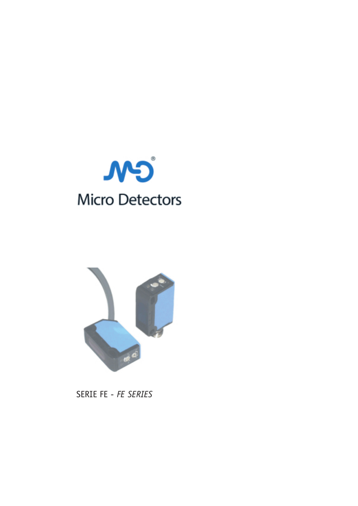 SERIE FE - FE SERIES Serie FE - FE Series SOMMARIO - INDEX Descrizione generale/General description 2 Descrizione del codice/Code structure 3 ACCESSORI/ACCESSORIES 4 SPECIFICHE MODELLI/MODELS SPECIFICATIONS 4 CURVE CARATTERISTICHE/FEATURE DIAGRAMS 5 DIMENSIONI/DIMENSIONS 6 SCHEMI DI COLLEGAMENTO/WIRING DIAGRAMS 7 STAFFE/MOUNTING BRACKET 8 1 serie FE - FE series FE SERIE DI FOTOCELLULE MINIATURIZZATE CON ELEVATE DISTANZE DI LETTURA FE MINIATURE PHOTOELECTRIC SWITCH SERIES WITH LARGE SCANNING RANGE Serie FE - FE Series FE SERIE DI FOTOCELLULE MINIATURIZZATE CON ELEVATE DISTANZE DI LETTURA FE MINIATURE PHOTOELECTRIC SWITCH SERIES WITH LARGE SCANNING RANGE serie FE - FE series Elenco delle caratteristiche funzionali - List of the functions ■ ■ ■ ■ ■ ■ ■ ■ ■ ■ ■ ■ ■ ■ ■ ■ ■ ■ Fotocellule miniaturizzate ad alte prestazioni Miniature Photoelectric Switch series with large scanning ranges Corpo in plastica di ridotte dimensioni: 20x11x31mm Small dimensions: 20x11x31mm plastic housing Ottica a 90° 90° optic axis orientation Uscita NPN o PNP PNP or NPN output Stato dell’uscita LO/DO selezionabile Lon/Don selectable output Regolazione di sensibilità a trimmer Trimmer sensitivity adjustment Grado di protezione IP67 IP67 Protection degree Emissione a luce rossa visibile Red light emission Approvazioni: Approvals: Descrizione generale - General description La FE è una serie completa di interruttori fotoelettrici in contenitore miniaturizzato. Dotata in particolare di un’elevata distanza di rilevamento, in grado di soddisfare le esigenze più difficili. The FE is a complete photoelectric switch series in miniature housing. It especially provides extensive scanning ranges for challenging requirements. ■ Proiettore e ricevitore portata 15 m ■ Through-beam 15 m range ■ Retroriflessione polarizzata su catarifrangente portata 5 m ■ Photoelectric reflex with polarizing filter 5 m range ■ Tasteggio energetico diffuso portata 900 mm ■ Diffuse energetic scanner 900 mm scanning distance ■ Tasteggio diffuso a soppressione di sfondo con distanza regolabile fino a 500 mm ■ Proximity switch with background suppression and adjustable scanning distance up to 500 mm Per i modelli proiettore e ricevitore a richiesta possono essere forniti i seguenti accessori: maschere adesive con fessure di varie dimensioni per ridurre la sezione del fascio luminoso e intercettare piccoli oggetti, telaietti con filtri polarizzatori per eliminare le interferenze tra coppie di proiettori e ricevitori montati paralleli e adiacenti. For the models with emitter and receiver option, the following accessories can be supplied: slotted adhesive masks with various dimensions to reduce the light beam section and detect small objects. Frame with polarizing filters to avoid interferences between the emitters and receivers couples muonted adjacent or in parallel. La elettronica integrata della serie FE, ha prestazioni paragonabili a quelle di prodotti di dimensioni superiori. Alcune specifiche caratteristiche della FE, rendono semplici le operazioni di installazione, collegamento e manutenzione, ad esempio: The integrated FE electronics has parameters comparable with the “big ones” and convenient FE details simplify handling for mounting, operation startup and maintenance, for example: ■ Regolazione di distanza di lettura o di sensibilità ■ Sensitivity/scanning distance adjustment 2 Serie FE - FE Series ■ Indicatore del livello del segnale ricevuto per una facile taratura e allineamento ■ Operating reserve display ■ Possibilità di scelta tra collegamento a cavo o a connettore M8 a 3 piedini ■ Optional connection cable or M8 3 pin connector In particolare la versione a connettore M8 a 3 piedini, rappresenta una semplice soluzione per la tecnica di collegamento ad isole decentrate che si sta diffondendo in questo periodo. Scatole di distribuzione per moduli a connettore, o per sistemi BUS, per una connessione “plug and play” della serie FE. Questo e altro rendono la serie FE interessante per i settori del magazzinaggio e trasporto, dell’industria dei semiconduttori, dell’assemblaggio di prodotti elettronici, delle macchine per il confezionamento e delle macchine automatiche in generale. The M8 plug, 3 pin, model especially provides an extremely simple solution for the island technologies being used increasingly at present. Distribution boxes for plug modules or BUS systems: for “plug and play” of FE Serie. All this and more make the FE very interesting for applications in the field of storage and conveyor technology, semi-conductor industry, electronic assembling, packaging technologies, handling and assembly systems and special mechanical engineering. FE R W Fotocellula cubica miniaturizzata Miniature cubic photoelectric switch 20x11x31mm /O P - 0 A FE Funzione/Function Emissione a LED visibile rosso Visible red emission LED Tipo di connessione Connection interface A Uscita cavo Cable output F Uscita connettore M8 3 pin 3 pin M8 connector R Specifiche del contenitore Housing Soppressione di sfondo 500mm Max Background suppression 500mm Max W Riflessione diretta energetica 900mm Max Energetic diffuse scanner 900mm Max 8 Retroriflessione polarizzata 5m Reflex with polarizing filter 5m N Proiettore 15m Max Emitter 15m Max H Ricevitore 15m Max Receiver 15m Max D Proiettore + ricevitore 15m Max Emitter + Receiver 15m Max LON/DON selezionabile/selectable Corpo in plastica Plastic housing 0 Logica/Output logic HD 0 P PNP N NPN 0 Proiettore Sender Modelli disponibili - Available models FERW/0P-0A FERW/0P-0F FERHD/0P-0A FERW/0N-0A FERW/0N-0F FERHD/0N-0A FER8/0P-0A FER8/0P-0F FERHD/0P-0F FER8/0N-0A FER8/0N-0F FERHD/0N-0F 3 FERN/0P-0A FERN/0P-0F FERN/0N-0A FERN/0N-0F serie FE - FE series Descrizione del codice - Code structure Serie FE - FE Series ACCESSORI - ACCESSORIES Codice/Code STOFE-00 STFEP-00 RL122 STFE 00 STFE 01 Descrizione/Description Serie di diaframmi per P+R 