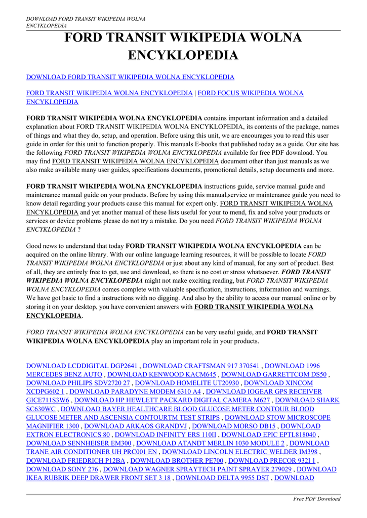 DOWNLOAD FORD TRANSIT WIKIPEDIA WOLNA ENCYKLOPEDIA FORD TRANSIT WIKIPEDIA WOLNA ENCYKLOPEDIA DOWNLOAD FORD TRANSIT WIKIPEDIA WOLNA ENCYKLOPEDIA FORD TRANSIT WIKIPEDIA WOLNA ENCYKLOPEDIA | FORD FOCUS WIKIPEDIA WOLNA ENCYKLOPEDIA FORD TRANSIT WIKIPEDIA WOLNA ENCYKLOPEDIA contains important information and a detailed explanation about FORD TRANSIT WIKIPEDIA WOLNA ENCYKLOPEDIA, its contents of the package, names of things and what they do, setup, and operation. Before using this unit, we are encourages you to read this user guide in order for this unit to function properly. This manuals E-books that published today as a guide. Our site has the following FORD TRANSIT WIKIPEDIA WOLNA ENCYKLOPEDIA available for free PDF download. You may find FORD TRANSIT WIKIPEDIA WOLNA ENCYKLOPEDIA document other than just manuals as we also make available many user guides, specifications documents, promotional details, setup documents and more. FORD TRANSIT WIKIPEDIA WOLNA ENCYKLOPEDIA instructions guide, service manual guide and maintenance manual guide on your products. Before by using this manual,service or maintenance guide you need to know detail regarding your products cause this manual for expert only. FORD TRANSIT WIKIPEDIA WOLNA ENCYKLOPEDIA and yet another manual of these lists useful for your to mend, fix and solve your products or services or device problems please do not try a mistake. Do you need FORD TRANSIT WIKIPEDIA WOLNA ENCYKLOPEDIA ? Good news to understand that today FORD TRANSIT WIKIPEDIA WOLNA ENCYKLOPEDIA can be acquired on the online library. With our online language learning resources, it will be possible to locate FORD TRANSIT WIKIPEDIA WOLNA ENCYKLOPEDIA or just about any kind of manual, for any sort of product. Best of all, they are entirely free to get, use and download, so there is no cost or stress whatsoever. FORD TRANSIT WIKIPEDIA WOLNA ENCYKLOPEDIA might not make exciting reading, but FORD TRANSIT WIKIPEDIA WOLNA ENCYKLOPEDIA comes complete with valuable specification, instructions, information and warnings. We have got basic to find a instructions with no digging. And also by the ability to access our manual online or by storing it on your desktop, you have convenient answers with FORD TRANSIT WIKIPEDIA WOLNA ENCYKLOPEDIA. FORD TRANSIT WIKIPEDIA WOLNA ENCYKLOPEDIA can be very useful guide, and FORD TRANSIT WIKIPEDIA WOLNA ENCYKLOPEDIA play an important role in your products. DOWNLOAD LCDDIGITAL DGP2641 , DOWNLOAD CRAFTSMAN 917 370541 , DOWNLOAD 1996 MERCEDES BENZ AUTO , DOWNLOAD KENWOOD KACM645 , DOWNLOAD GARRETTCOM DS50 , DOWNLOAD PHILIPS SDV2720 27 , DOWNLOAD HOMELITE UT20930 , DOWNLOAD XINCOM XCDPG602 1 , DOWNLOAD PARADYNE MODEM 6310 A4 , DOWNLOAD IOGEAR GPS RECEIVER GICE711S3W6 , DOWNLOAD HP HEWLETT PACKARD DIGITAL CAMERA M627 , DOWNLOAD SHARK SC630WC , DOWNLOAD BAYER HEALTHCARE BLOOD GLUCOSE METER CONTOUR BLOOD GLUCOSE METER AND ASCENSIA CONTOURTM TEST STRIPS , DOWNLOAD STOW MICROSCOPE MAGNIFIER 1300 , DOWNLOAD ARKAOS GRANDVJ , DOWNLOAD MORSO DB15 , DOWNLOAD EXTRON ELECTRONICS 80 , DOWNLOAD INFINITY ERS 110II , DOWNLOAD EPIC EPTL818040 , DOWNLOAD SENNHEISER EM300 , DOWNLOAD ATANDT MERLIN 1030 MODULE 2 , DOWNLOAD TRANE AIR CONDITIONER UH PRC001 EN , DOWNLOAD LINCOLN ELECTRIC WELDER IM398 , DOWNLOAD FRIEDRICH P12BA , DOWNLOAD BROTHER PE700 , DOWNLOAD PRECOR 932I 1 , DOWNLOAD SONY 276 , DOWNLOAD WAGNER SPRAYTECH PAINT SPRAYER 279029 , DOWNLOAD IKEA RUBRIK DEEP DRAWER FRONT SET 3 18 , DOWNLOAD DELTA 9955 DST , DOWNLOAD Free PDF Download DOWNLOAD FORD TRANSIT WIKIPEDIA WOLNA ENCYKLOPEDIA WINEGARD HD1080 1 , DOWNLOAD PANASONIC MUSICAL INSTRUMENT SH EX1200 , DOWNLOAD ELECTROLUX DITO 603286 , DOWNLOAD TP LINK SWITCH TL SL1351 , DOWNLOAD NORTEL NORTEL PASSPORT 8683POS Free PDF Download