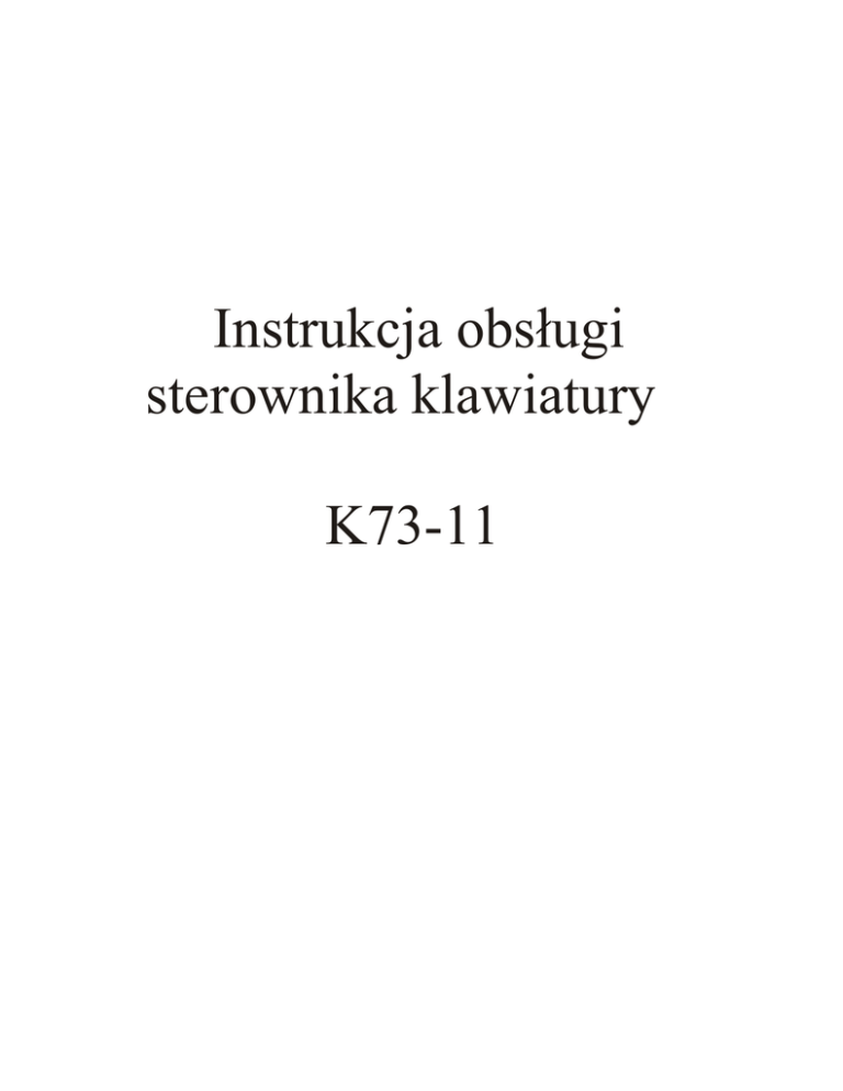 Instrukcja obsługi sterownika klawiatury K73-11 Spis treści 1. Informacje ogólne----------------------------------------------------------1 1.1. Uwagi-------------------------------------------------------------------------1 1.2 Funkcje oraz opis---------------------------------------------------------1 1.3 Specyfikacje techniczne -----------------------------------------------1 2. Podłączenie klawiatury---------------------------------------------------2 2.1. Instrukcja obsługi interfejsu klawiatury--------------------------2 2.1.1 Interfejsy portów RS422 oraz RS485----------------------------2 2.1.2 Port zasilający-----------------------------------------------------------2 2.1.3 Interfejs RS232 EIA ----------------------------------------------------2 2.1.4 Interfejs RJ45-------------------------------------------------------------2 2.2. Ustawienia przełączników DIP----------------------------------------3 2.3. Podłączenie matrycy-----------------------------------------------------4 2.3.1 Podłączenie portu lokalnego RJ45--------------------------------4 2.3.2 Podłączenie portu zdalnego RS422-------------------------------4 2.4 Bezpośrednie podłączenie do kamery obrotowej --------------5 2.5. Podłączenie klawiatury w systemie --------------------------------5 3. Instrukcja obsługi klawiatury -------------------------------------------7 3.1. Zasilanie klawiatury------------------------------------------------ ---7 3.2 Wyświetlacz LCD-----------------------------------------------------------7 3.3 Sterowanie kamerą obrotową przy pomocy joysticka---------7 3.4 Zmiana kamery głównej kamery ------------------------------------ 8 3.5. Sterowanie obiektywem kamery--------------------------------------8 3.6. Ustawienia funkcji kamery----------------------------------------------8 3.6.1 Zadane presety------------------------------------------------------------8 3.6.2 Tryb wybierania punktowego obiektu (Scan)-------------------8 3.6.3 Tryb rozpoznawania obrazu (Pattern)-----------------------------9 3.6.4. Tryb wyszukiwania obrazu (Cruise)-------------------------------9 3.7. Przywoływanie menu głównego kamery---------------------------9 3.8 Sterowanie matrycą--------------------------------------------------------9 3.8.1 Kolejne przełączanie kamer obrotowych ------------------------9 3.8.2 Przywoływanie menu głównego matrycy ------------------------9 3.8.3 Zatwierdzone zmiany ustawień --------------------------------------9 3.8.4 Zmiana monitora głównego--------------------------------------------9 4.Dodatki----------------------------------------------------------------------------10 4.1 Wiedza podstawowa o magistrali Rs485 --------------------------10 4.2 Skrót do instrukcji obsługi klawiatury ------------------------------11 Dana klawiatura jest uniwersalnym urządzeniem z serii urządzeń zabezpieczenia monitorującego, która może sterować kamerami obrotowymi o różnych protokołach matrycy oraz rejestratora oraz jest wyposażona w joystick trójwymiarowy, sterujący obrotami kamery oraz funkcją zoom. Dodatkowo posiada ona ekran LCD z funkcją kompensacji światła tylnego „back-light”, który wyświetla aktualną funkcję, zadaje nazwę sterującego protokołu, adres ID kamery, adres ID monitora oraz stan joysticków. Dzięki tym funkcjom, użytkownik ma możliwość łatwiej sterować systemem monitorującym. 1.1 Uwagi • Uważnie przeczytaj instrukcje oraz zachowaj po przeczytaniu. • Przeczytaj i odnieś się do uwag w instrukcji. • Nie umieszczaj klawiatury w wilgotnym miejscu. • Nie przechowuj klawiatury blisko egzotermicznych obiektów. 1.2 Funkcje oraz opis klawiatury • Port magistrali Rs485 oraz klawiatura zezwalają na podłączenie bezpośrednie 31 kamery obrotowej wewnątrz systemu. • Klawiatura współpracuję ze wszystkimi typami protokołów. • Zezwala na regulację ostrości obiektywu kamery oraz funkcję zoom. • Daje możliwość ustawienia i przywoływania presetów, wybierania punktowego, rozpoznawania obrazu oraz wyszukiwania obrazu. • Zezwala na sterowanie matrycą oraz bezpośrednie sterowanie kamerą obrotową. • Ma na wyposażeniu joystick typu 3D oraz monitor LCD 1.3 Specyfikacje techniczne ØWymagania elektroniczne Zasilanie 9V-12V AC/DC Moc napięcia 2.5W Ø Wymagania transmisyjne Interfejs transmisyjny RS485 1 RS422 1,RS232 1,RJ45 Częstotliwość transmisji 2400Bps ,4800Bps, 9600Bps Odległość komunikacyjna 1.2KM (przy RS485 i Rs422) ØWarunki pracy Temperatura pracy 0 C-40 C Względna wilgotność poniżej 90% Ø Cechy fizyczne D*S*W=375*165*95(mm) Waga netto1.2kg 2. Podłączenie klawiatury 2.1. Instrukcja obsługi interfejsu klawiatury Z tyłu klawiatury umieszczony jest interfejs, który w połączeniu z interfejsami transmisyjnymi typu RS232, RS422, RS485, RJ45, może połączyć oraz sterować różnego rodzaju urządzeniami zewnętrznymi. 2.1.1. Interfejsy portów RS422 oraz RS485 Interfejsy portów Rs422 oraz Rs485 umieszczone są na 6bitowym taśmowym połączeniu kabli klawiatury. Przy bezpośrednim sterowaniu kamerą, klawiatura używa portu RS485 (A+ B-), który odpowiada za połączenie z kamerą obrotową. Przy sterowaniu kamerą poprzez matrycę port RS485 (A+, B-) zezwala na komunikację z rejestratorami bądź innymi klawiaturami, przy czym końcówką wysyłającą sygnał jest RS422 (T+ T-), a RS422 (R+,R-) jest odbierającą końcówką sygnału. Obydwa sygnały mogą łączyć z matrycą, rejestratorem cyfrowym, itd 2.1.2. Port zasilający Port ten zezwala na połączenie się z zasilaniem 9V-12V DC/AC. Klawiatura jest wyposażona w transformator, który konwertuje AC230V w DC9V. 2.1.3 Interfejs RS232 EIA Używa się do rozszerzenia funkcji o sterowanie menu, rejestratorem DVR, komputerem PC, itd. 2.1.4 Interfejs RJ45 Tego typu sieciowy port można głównie używać do połączenia z matrycą na krótkie odległości (mniej niż 7,6 m) Patrz rozdział „2.2 połączeni