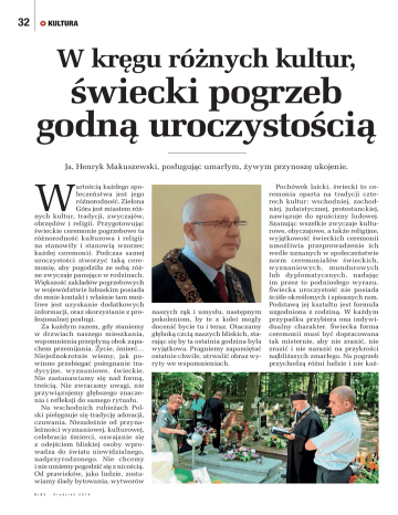 32 KULTURA W kręgu różnych kultur, świecki pogrzeb godną uroczystością Ja, Henryk Makuszewski, posługując umarłym, żywym przynoszę ukojenie. W artością każdego społeczeństwa jest jego różnorodność. Zielona Góra jest miastem różnych kultur, tradycji, zwyczajów, obrzędów i religii. Przygotowując świeckie ceremonie pogrzebowe ta różnorodność kulturowa i religijna stanowiły i stanowią wzorzec każdej ceremonii. Podczas samej uroczystości stworzyć taką ceremonię, aby pogodziła ze sobą różne zwyczaje panujące w rodzinach. Większość zakładów pogrzebowych w województwie lubuskim posiada do mnie kontakt i właśnie tam możliwe jest uzyskanie dodatkowych informacji, oraz skorzystanie z profesjonalnej posługi. Za każdym razem, gdy staniemy w drzwiach naszego mieszkania, wspomnienia przepłyną obok zapachem przemijania. Życie, śmierć… Niejednokrotnie wiemy, jak powinno przebiegać pożegnanie tradycyjne, wyznaniowe, świeckie. Nie zastanawiamy się nad formą, treścią. Nie zwracamy uwagi, nie przywiązujemy głębszego znaczenia i refleksji do samego rytuału. Na wschodnich rubieżach Polski pielęgnuje się tradycję adoracji, czuwania. Niezależnie od przynależności wyznaniowej, kulturowej, celebracja śmierci, oswajanie się z odejściem bliskiej osoby wprowadza do świata niewidzialnego, nadprzyrodzonego. Nie chcemy i nie umiemy pogodzić się z nicością. Od prawieków, jako ludzie, zostawiamy ślady bytowania, wytworów N r 5 1 · G r u d z i e ń 2 0 1 4 naszych rąk i umysłu, następnym pokoleniom, by te z kolei mogły docenić bycie tu i teraz. Otaczamy głęboką czcią naszych bliskich, starając się by ta ostatnia godzina była wyjątkowa. Pragniemy zapamiętać ostatnie chwile, utrwalić obraz wyryty we wspomnieniach. Pochówek laicki, świecki to ceremonia oparta na tradycji czterech kultur: wschodniej, zachodniej, judaistycznej, protestanckiej, nawiązuje do spuścizny ludowej. Szanując wszelkie zwyczaje kulturowe, obyczajowe, a także religijne, wyjątkowość świeckich ceremonii umożliwia przeprowadzenie ich wedle uznanych w społeczeństwie norm ceremoniałów świeckich, wyznaniowych, mundurowych lub dyplomatycznych, nadając im przez to podniosłego wyrazu. Świecka uroczystość nie posiada ściśle określonych i spisanych ram. Podstawą jej kształtu jest formuła uzgodniona z rodziną. W każdym przypadku przybiera ona indywidualny charakter. Świecka forma ceremonii musi być dopracowana tak misternie, aby nie zranić, nie zrazić i nie narazić na przykrości najbliższych zmarłego. Na pogrzeb przychodzą różni ludzie i nie każ- BIULETYN POLSKIEJ IZBY POGRZEBOWEJ dy akceptuje laicki pochówek. Podejmując się przewodniczenia, a wcześniej opracowania świeckiego pochówku, za każdym razem dokonuję doboru odpowiednich słów liryki, aby wypowiedziane nad grobem słowa stały się godną i doniosłą formą pożegnania. Podziękowania za wspólne spędzone życie, za chwile przepojone miłością. W celu podkreślenia doniosłości uroczystości, dla najbliższych i ich otoczenia, w każdym przypadku istnieje możliwość udziału świeckiego mistrza ceremonii wspólnie z duchownymi wszystkich wyznań. Jest to zgodne z kanonami religijnymi, z zachowaniem jednakże prymatu wobec danego wyznania. Ważna też dla oprawy uroczystości jest muzyka. Jej treść nadaje i podkreśla wyjątkowy charakter, a niejednokrotnie stanowi sedno każdego pożegnania. To bliscy decydują o wizualizacji i aranżacji uroczystości, a także o czasie jej trwania. Stojąc przed doborem i wyborem zakładu pogrzebowego kierujemy się zazwyczaj opinią przekazywaną z ust do ust. To w większości za całość ceremonii odpowiada zakład pogrzebowy, a jego zaangażowanie składa się na wrażenie i opinie z uczestniczenia w świeckim pogrzebie. Zapyta ktoś, komu i dla kogo sprawuje się laicki ceremoniał pogrzebowy? Co on wnosi w rzeczywistość chrześ- cijańskiego, w większości, społeczeństwa? Czy prowadzący może odmówić modlitwy nad grobem zmarłego? Jeśli rodzina, najbliżsi czują taką potrzebę, to mistrz ceremonii przeniesie uczestników uroczystości w świat pozaziemski, w świat nadprzyrodzony. Twierdzę, że tak należy przygotować lirykę, by wypowiedziane słowa westchnienia odnosiły się do Matki Ziemi. Z różnych ludzkich powodów uczestnictwo duchownego nieraz jest nieakceptowane. To dla tych rodzin, dla ich bliskich, świecki mistrz ceremonii pogrzebowej, jest rozwiązaniem. Przygotuje on i przeprowadzi godny i godziwy, wraz z zachowaniem zasad etycznych, ceremoniał. Świeckie ceremonie pogrzebowe Henryk Makuszewski Zielona Góra tel. 792 095 219, e-mail: [email protected] http://swieckieceremonie.blogspot.com/ Informujemy, że specjalnie przygotowany przez STU Ergo Hestię SA program ubezpieczeniowy dla Członków Polskiej Izby Pogrzebowej: „Ubezpieczenie od roszczeń za naruszenie dóbr osobistych rodzin osób zmarłych oraz ubezpieczenie odpowiedzialności cywilnej Przedsiębiorcy” ruszył od 01 grudnia 2014 roku – pierwsze polisy zostały wystawione. Jednymi z pierwszych Firm, które się ubezpieczyły są Przedsiębiorstwa z Grupy „Skrzydlewska”. Razem na chwilę obecną ubezpieczyło się 20 członków Izby. Zachęcamy Wszystkich Członków do skorzystania z tego Programu. Przypominamy, że Program zawiera procedurę do tej znanej z kolizji samochodowych. Gdy takowa nastąpi, podajemy poszkodowanemu nasz numer polisy i zapominamy o sprawie. Nie interesuje nas sposób naprawy jego samochodu, ani jego koszt, bo w tych sprawach reprezentuje nas ubezpieczyciel. Tak jest również z niniejszym ubezpieczeniem. W chwili zgłoszenia się osoby żądającej od nas pieniędzy, podajemy jej numer naszej polisy i kontakt do naszego przedstawiciela (prawnika) z Ergo Hestii. To on prowadzi dalsze rozmowy, negocjacje i jeśli zachodzi taka konieczność wypłaca, jako Ergo Hestia, odszkodowan