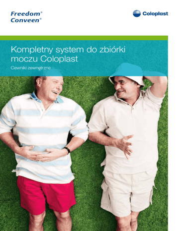 Kompletny system do zbiórki moczu Coloplast Cewniki zewnętrzne Kompletny system do zbiórki moczu Coloplast Coloplast nieustannie pracuje nad poprawą jakości życia osób z zaburzeniami w oddawaniu moczu. Gdy zawiedzie naturalna kontrola czynności fizjologicznych, dostarczamy pełną gamę produktów Freedom ® i Conveen ®, które zapewniają większe bezpieczeństwo, dyskrecję i komfort życia. Coloplast dba o poprawę jakości życia użytkowników, zapewniając jednocześnie edukację, informacje i serwis. Stosowanie kompletnego systemu do zbiórki moczu zapewnia większy komfort i bezpieczeństwo niż pieluchomajtki czy stałe cewniki wewnętrzne (np. typu Foley). Użytkownicy nie muszą przejmować się zamoczonym ubraniem czy też nieprzyjemnym zapachem. Zmniejszone jest również ryzyko podrażnienia skóry, powstania odleżyn oraz infekcji dróg moczowych. Coloplast oferuje użytkownikom szeroką gamę worków do zbiórki moczu Conveen. Obejmuje ona zarówno worki do mocowania na nodze, jak i do zbiórki nocnej. Użytkownik może wybrać worek o odpowiadającej mu pojemności, długości drenu, budowie. Coloplast zapewnia możliwość dopasowania produktów do indywidualnych potrzeb, aby użytkownicy mogli czuć się komfortowo, bezpiecznie i pewnie. Cewnik zewnętrzny Freedom lub Conveen Dren łączący cewnik z workiem do zbiórki moczu Paski do mocowania worka na nodze Worek do zbiórki moczu Conveen Porady praktyczne dla mężczyzn z zaburzeniami w oddawaniu moczu Opróżnianie pęcherza moczowego z zalegającego moczu Dodatkowym problemem u osób z przeszkodą w odpływie moczu oraz z tak zwanym „zaleganiem”(niecałkowitym opróżnianiem pęcherza), jest duże zagrożenie nawracającymi zakażeniami dolnych dróg moczowych (kamicą układu moczowego). W konsekwencji prowadzi ona do postępującego uszkodzenia nerek. Wymaga to bezwzględnie wdrożenia właściwego leczenia. Należy pamiętać o konieczności regularnego opróżniania pęcherza. Jeżeli chory nie jest w stanie opróżnić pęcherza metodą naturalną, musi czynić to poprzez jednorazowe cewnikowanie przerywane z zachowaniem sterylności. Stosowanie stałych cewników wewnętrznych do pęcherza jest rozwiązaniem, którego powinniśmy zdecydowanie unikać. Wiąże się ono z ryzykiem szeregu powikłań. Należą do nich m.in. nawracające infekcje, stany zapalne cewki i pęcherza, ropnie, przetoki i uchyłki cewkowe oraz zapalenia najądrza. Przyjmowanie płynów Bardzo często zdarza się, że mając problemy z nietrzymaniem moczu ogranicza się przyjmowanie płynów. Oczywiście planując wyjście z domu na dłużej, zwłaszcza tam, gdzie mogą być problemy ze skorzystaniem z toalety, można czasami zmniejszyć ilość przyjętych płynów. Nie należy czynić tego stale, ponieważ ma to niekorzystny wpływ na funkcjonowanie układu moczowego i sprzyja wytwarzaniu złogów. Korzystne jest natomiast picie płynów w określonej ilości w regularnych odstępach czasu, co umożliwia przewidywanie terminu, kiedy będziemy musieli skorzystać z toalety. Należy pamiętać o tym, aby nie pić mniej niż 1,5 l płynów na dobę. Higiena intymna Bardzo ważne jest też dbanie o higienę intymną. Mycie okolicy krocza co najmniej raz dziennie specjalnym mydłem antybakteryjnym nie tylko zapobiega wytwarzaniu nieprzyjemnego zapachu, ale także przeciwdziała przedostawaniu się bakterii ze skóry do cewki moczowej, a następnie do pęcherza moczowego. Osoby z nietrzymaniem moczu z powodów neurologicznych powinny sobie zdawać sprawę z faktu, że bardzo często próba przywrócenia kontroli nad pęcherzem za pomocą metody wyciskania lub wygniatania moczu, może przynieść więcej szkody niż pożytku. Może to prowadzić do uszkodzenia górnych dróg moczowych. W wytycznych medycznych, jako metodę z wyboru, rekomenduje się opróżnianie pęcherza za pomocą cewnikowania przerywanego. Szczególnie wskazane są cewniki powlekane, gotowe do natychmiastowego użycia. W Polsce pierwszym hydrofilowym cewnikiem gotowym do natychmiastowego użycia jest cewnik SpeediCath. SpeediCath odróżnia się od innych cewników tym, że po wyjęciu z opakowania jest gotowy do natychmiastowego użycia, bez konieczności dodawania wody lub substancji poślizgowej. Umożliwia opróżnianie pęcherza moczowego w momencie dogodnym dla pacjenta. Cewniki SpeediCath mogą być stosowane zarówno przez mężczyzn, kobiety jak i dzieci. Zabezpieczenie przed zmoczeniem ubrania Metodą polecaną i przy prawidłowym stosowaniu, wolną od jakichkolwiek powikłań, jest stosowanie Kompletnego systemu do zbiórki moczu składającego się z cewników zewnętrznych wraz z workami do zbiorki moczu. Cewnik zewnętrzny Freedom® i Conveen® to dyskretne i higieniczne rozwiązanie. Całkowicie eliminuje wyciek moczu i nieprzyjemny, krępujący zapach. Freedom i Conveen jest przyjazny dla skóry i wygodny w użyciu. Jest niewidoczny pod codziennym ubraniem i zapewnia swobodę poruszania się. Może być noszony przez 24 godziny. Asortyment produktów urologicznych Coloplast w Polsce Cewniki zewnętrzne Silikonowe Freedom® Lateksowe Conveen® Nielateksowe – Conveen® Security+ Freedom Worki do zbiórki moczu Conveen® Jednorazowy cewnik powlekany do cewnikowania przerywanego SpeediCath® – jednorazowy cewnik hydrofilowy gotowy do natychmiastowego użycia Conveen Conveen Security+ Cewniki zewnętrzne • Cewniki zewnętrzne są dostępne w rozmaitych rozmiarach, długościach, zbudowane są z różnych materiałów. • Ważny jest dobór właściwego rozmiaru cewnika. • Jeżeli cewnik będzie zbyt mały, może spowodować dyskomfort, zaś zbyt duży nie będzie dobrze przylegać do skóry i mogą pojawić się wycieki. • Mogą być pokryte przylepcem od wewnętrznej strony – system 1-częściowy, bądź posiadać przylepiec w formie paska – system 2-częściowy. • Materiał, z którego zbudowane są cewniki dopasowuje się do do