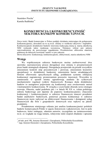 KONKURENCJA I KONKURENCYJNOŚĆ SEKTORA BANKÓW