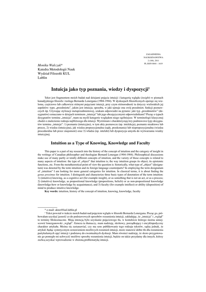 Intuicja jako typ poznania, wiedzy i dyspozycji1