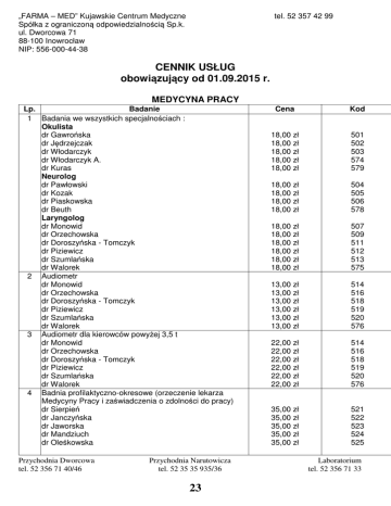 CENNIK USŁUG obowiązujący od 01.09.2015 r. - Farma-Med