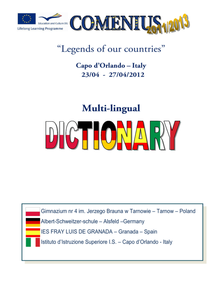 imnazjum nr 4 im. Jerzego Brauna w Tarnowie – Gimnazium nr 4 im. Jerzego Brauna w Tarnowie – Tarnow – Poland Albert-Schweitzer-schule – Alsfeld –Germany IES FRAY LUIS DE GRANADA – Granada – Spain Istituto d’Istruzione Superiore I.S. – Capo d’Orlando - Italy