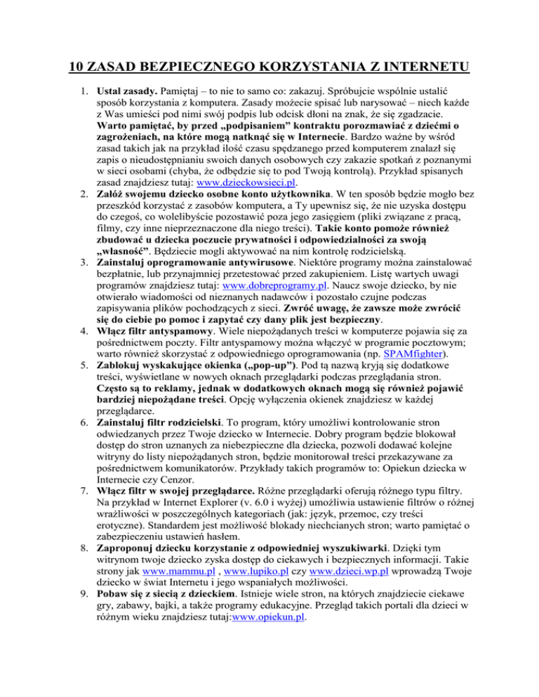 10 ZASAD BEZPIECZNEGO KORZYSTANIA Z INTERNETU