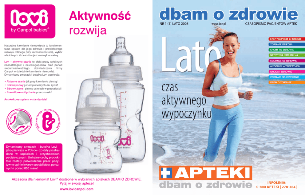 dbam o zdrowie Nr 1 (1) lato 2008 www.doz.pl Lato czas aktywnego wypoczynku czasopismo pacjeNtów aptek encyklopedia chorego zdrowie dziecka sport to zdrowie Medycyna naturalna kuchnia na zdrowie aktywny wypoczynek uroda i zdrowie zdrowe dojrzewanie dbaM o zdrowie infolinia: 0-800 apteki | 278-364 | Nr 1 (1) lato 2008 Encyklopedia Chorego Fizykoterapia������������������� 4 Niewiele jest osób, które jeszcze nigdy w swoim życiu nie skorzystały z dobroczynnych działań zabiegów fizykoterapeutycznych, łagodzących bóle związane z rwą kulszową czy ramienną... lek. med. Ewa Pakuła www.doz.pl czasopismo pacjentów aptek aktywny wypoczynek Zakopane: raj dla piechurów���������� 78 Zakopane jest mekką dla turystów. Lato czy zima – przyciąga do siebie tłumy... Katarzyna Pucek uroda i zdrowie Gorzkie życie z cukrzycą������������� 12 Cukrzyca to choroba, na którą cierpi coraz więcej ludzi – zapadają na nią nie tylko osoby starsze, ale także coraz więcej dzieci... Maria Bankiet Witaminy zdrowia���������������� 20 Witaminy są niezbędne do prawidłowego funkcjonowania organizmu człowieka... Katarzyna Sosińska zdrowie dziecka Pielęgnacja skóry���������������� 84 Dbałość o urodę warto rozpocząć od wczesnej młodości i odpowiednio do swojego wieku... Katarzyna Sosińska zdrowe dojrzewanie Trudne jest życie nastolatki...��������� 92 Jeszcze nie kobieta, a już nie dziewczynka – właściwie nie wiadomo, jak nazwać nastolatkę... Maria Bankiet Autyzm – moje dziecko jest inne...������� 30 dbam o zdrowie Diagnoza autyzmu jest zazwyczaj zaskakująca i przepełnia rodziców lękiem... lek. med. Aniela Głowacz Okiem specjalisty��������������� 102 O padaczce mówi się, że jest jedną z najczęstszych chorób neurologicznych wieku dziecięcego... Iwona Sierant Okiem specjalisty��������������� 104 Biegunka jest wstydliwym problemem, z którym boryka się coraz więcej osób, szczególnie dzieci... Marta Graczyk Z życia fundacji���������������� 106 sport to zdrowie Krzyżówka�������������������� 108 Dozikowe lato������������������ 112 Padaczka – dużo obaw, mało wiedzy����� 36 Biegunka��������������������� 42 Lato – czas aktywnego odpoczynku������ 50 Lato to nie tylko czas wakacji i pięknej pogody, ale również odpoczynku... Izabella Wojdała Na pytania Pacjentów odpowiada lekarz medycyny i doktor nauk farmaceutycznych Jacek Owczarek Jak bezpiecznie dobrać właściwy lek przeciwbólowy – odpowiedzi udziela mgr n. farm. Łukasz Kirzyński Pomagamy pacjentom aptek – rozmowa z Tomaszem Kisielem, szefem Fundacji Dbam o Zdrowie Razem z sympatycznym chłopcem Dozikiem najmłodsi czytelnicy bawią się, rysują i rozwiązują rebusy. Drodzy Czytelnicy Oddajemy w Wasze ręce nowy produkt – kwartalnik „Dbam o Zdrowie”. Nieustająco pracujemy w redakcji nad udoskonalaniem czasopisma dla Pacjentów i ten właśnie pierwszy numer jest efektem naszych starań, aby Państwa wiedza o zdrowiu i aktywnym trybie życie była coraz większa i bardziej przydatna na co dzień. Mamy nadzieję, że spodoba się Państwu znacznie wyższy poziom edytorski czasopisma oraz nowa formuła gazety, którą nadal bezpłatnie będą otrzymywać aktywni uczestnicy Programu Dbam o Zdrowie. Zależy nad także na kontakcie z Państwem. Bardzo byśmy sobie życzyli, aby listownie podzielili się Państwo z nami opiniami o kwartalniku. Pomoże nam to redagować go zgodnie z oczekiwaniami i szybko reagować na potrzeby Czytelników. Życzymy miłej lektury. Redakcja Medycyna naturalna Akupunktura – chińskie leczenie������� 62 Kto by pomyślał, że nakłuwanie specjalnych igieł na punkty ciała człowieka jest metodą leczenia? Katarzyna Sosińska Akupresura – bardzo zdrowy dotyk������ 66 Skuteczną naturalną metodą leczenia jest wywodząca się z Chin akupresura... Katarzyna Sosińska infolinia: 0-800 apteki | 278-364 | kuchnia na zdrowie Zrzucić wagę każdy może...����������� 70 infolinia: 0-800 APTEKI | 278-354 | Kto z nas nie marzy o pięknej, szczupłej sylwetce. Jednak droga do niej jest najczęściej długa... Jolanta Ossowska Księgarnia www.doz.pl������������ 114 Wiele ciekawych propozycji naszej księgarni wysyłkowej. Listy od Pacjentów���������������� 116 www.doz.pl Fizykoterapia Niewiele jest osób, które jeszcze Nigdy w swoim życiu Nie skorzystały z dobroczyNNych działań zabiegów fizykoterapeutyczNych, łagodzących bóle związaNe z rwą kulszową czy ramieNNą, bólami stawów albo staNami pourazowymi. lek. med. ewa Pakuła www.doz.pl okiem specjalisty infolinia: 0-800 apTEki | 278-354 | Jest to leczenie ciepłem. Reakcje na bodźce cieplne są miejscowe i ogólne. Odczyn miejscowy polega na rozszerzeniu naczyń krwionośnych i limfatycznych pod wpływem działania ciepła, w wyniku czego wzrasta przepływ krwi. To zjawisko wykorzystuje się w leczeniu stanów zapalnych. Poza tym ciepło uśmierza ból i zmniejsza napięcie mięśniowe. Stosując leczenie ciepłem, należy uważać na jego nasilenie, ponieważ przy nadmiarze może dojść do oparzenia. Reakcja ogólnoustrojowa występuje, gdy na ustrój działają silne bodźce cieplne i wówczas może dojść do podniesienia temperatury ciała, czyli przegrzania. Przegrzanie pobudza gruczoły potowe do wydzielania potu. Wraz z potem tracimy wodę, chlorek sodu i inne substancje mineralne. Pamiętajmy, że w celu uzupełniania ich niedoborów w trakcie intensywnych zabiegów ciepłoleczniczych n