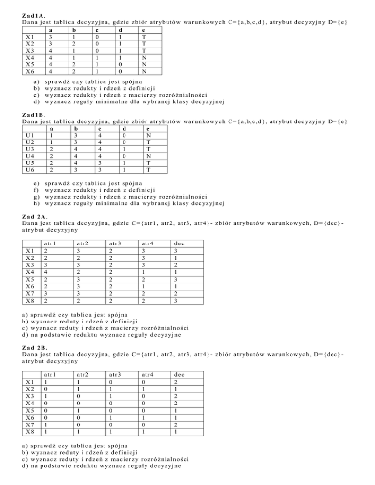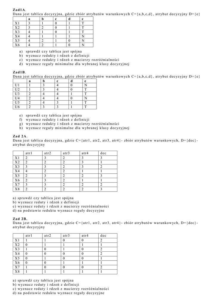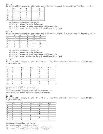 Da na j e st tab li ca d ec yz y j na, gd z ie zb ió r atr yb u tó w wa r u n ko wyc h C={ a,b , c,d }, a tr yb u t d ec yz yj n y D={ e}