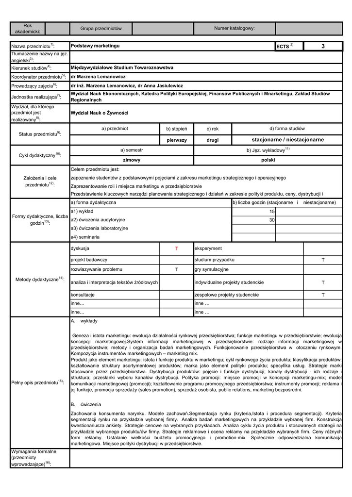 Podstawy marketingu - Wydział Nauk o Żywności SGGW