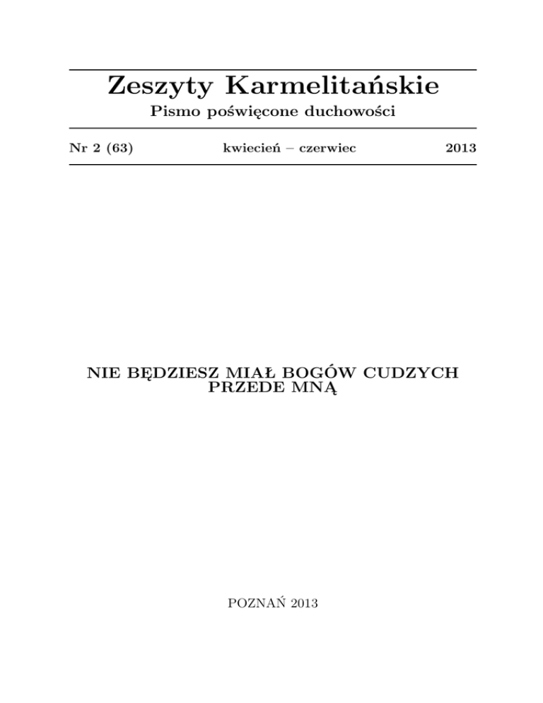 Zeszyty Karmelitańskie Pismo poświęcone duchowości Nr 2 (63) kwiecień – czerwiec 2013 NIE BĘDZIESZ MIAŁ BOGÓW CUDZYCH PRZEDE MNĄ POZNAŃ 2013 Wydawca: FLOS CARMELI Wydawnictwo Warszawskiej Prowincji Karmelitów Bosych Redakcja: Antoni Rachmajda OCD (red.) Marek Jekel, Maciej Mazurek, Anna Młodak, Andrzej Sikorski Zespół: Krzysztof Koechler, Sergiusz Niziński OCD, Aleksandra Pethe Grażyna Piskorz, Juliusz Wiewióra OCD, Karol Milewski OCD Z „Zeszytami” stale współpracują: ks. Paweł Bortkiewicz TChr, ks. Ryszard Kozłowski COr Gabriel Maciejewski, Jan Malicki OCD, Jolanta Miluska Katarzyna Olbrycht, Krzysztof Stachewicz Adiustacja i korekta: Elżbieta Gola Imprimi potest: Roman Hernoga OCD, prowincjał Warszawa, dn. 21.03.2013, L. dz. 50/P/2013 Adres Redakcji: ul. Działowa 25, 61-747 Poznań tel: 61-856-08-34, fax: 61-856-09-47 e-mail: [email protected] http:www.floscarmeli.poznan.pl Projekt okładki: Waldemar Pluta Zdjęcie na okładce: Monika Oliwa-Ciesielska Druk: Uni-Druk, Luboń Redakcja zastrzega sobie prawo skracania tekstów i zmiany tytułów. Materiałów niezamówionych nie oddajemy. Nakład: 700 egz. ISSN: 1230-7041 Spis treści Od Redakcji . . . . . . . . . . . . . . . . . . . . . . . . . . . . . . . . . . . . . . . . . . . . . . . . . . . . . . . . . . 5 DUCHOWOŚĆ ORIENTACJE Europa musi mieć swoją twarz Dominika Ćosić rozmawia z ks. Piotrem Mazurkiewiczem . . . . . . . . . . . . . . 6 ks. Janusz Nawrot: Fundament ludzkiego życia . . . . . . . . . . . . . . . . . . . . 14 ks. Jerzy Szymik: Jedyne konieczne. Benedykt XVI o prymacie Boga 22 Krzysztof Stachewicz: O miłowaniu jedynego Boga . . . . . . . . . . . . . . . . 27 Dominika Ćosić: Bożki współczesnej Europy . . . . . . . . . . . . . . . . . . . . . . . 33 PRZYBLIŻENIA – OPCJE ks. Ryszard Kozłowski COr: Benedykta XVI Jezus z Nazaretu – zbawca egoistów . . . . . . . . . . . . . . . . . . 40 Aleksander Nalaskowski: Wyzwanie pierwszego przykazania . . . . . . . 49 ks. Andrzej Zwoliński: Czary, magia, demony, zabobony i okultyzm 52 Jan P. Malicki OCD: Nie będziesz miał cudzych (swoich) misji przede Mną . . . . . . . . . . . . . . . . . 65 Bartosz Paszkiewicz: Męczennicy chrześcijańscy . . . . . . . . . . . . . . . . . . . 69 Wypowiedzi. O tym, że Bóg jest najważniejszy . . . . . . . . . . . . . . . . . . . . . . . 76 3 KARMEL TEREZJAŃSKI REFLEKSJA Jesús Castellano OCD: Duchowość św. Teresy od Jezusa . . . . . . . . . . 80 José V. Rodrı́guez OCD: Twierdza wewnętrzna lub Mieszkania . . . 84 MISTYKA MISTYKA KARMELU Ciro Garcı́a OCD: Mistyka Karmelu. Historia . . . . . . . . . . . . . . . . . . . . . .90 ŚW. TERESA OD JEZUSA José V. Rodrı́guez OCD: Twierdza wewnętrzna lub Mieszkania . . . 98 MISTYKA W CODZIENNOŚCI Wanda: Nie chcę mieć bogów cudzych przed Tobą . . . . . . . . . . . . . . . . . . 105 POLECANE – POLECANI Juliusz Wnorowski: Pochwała Głupoty Erazma z Rotterdamu . . . . .110 Gabriel Maciejewski: Dwie legendy, dwa miasta, dwaj święci . . . . . 118 Tomasz „Rolex” Pernak: Jakie państwo? Zagadnienia wstępne . . . 123 Od Redakcji „Ja jestem Pan, twój Bóg, który cię wywiódł z ziemi egipskiej, z domu niewoli. Nie będziesz miał cudzych bogów przede Mną!” (Wj 20,2-3). „Wszystko bowiem, co jest na świecie, a więc: pożądliwość ciała, pożądliwość oczu i pycha tego życia, pochodzi nie od Ojca, lecz od świata (...). Kto natomiast popełnia grzech, pochodzi od diabła” (1 J 2,16; 3,18). Nieprawdą jest, że człowiek dziś przestał wierzyć. Wierzy on bardziej niż kiedykolwiek. Tylko że jego wiara dotyczy wszystkiego – poza prawdziwym Bogiem. Jego świat stał się pogański, pełen bożków, wraca powoli do swego właściciela – do diabła. Nie może bowiem być pusty świat człowieka, tak jak nie może być puste jego serce. Papież Franciszek w jednym ze swych pierwszych wystąpień powiedział, że „człowiek w swym życiu modli się do Boga lub do szatana”. Pozornie te słowa wydają się przesadą, zabiegiem oratorskim. Wielu oburzy się na nie. Zawodowe autorytety podpiszą list protestacyjny, niektórzy wypowiedzą swoje mądrości („prywatnie oczywiście”) na Facebooku lub Twitterze. Kiedy jednak przyjrzymy się im dokładniej, zobaczymy, jak bliskie są prawdy... Oczywiście, człowiek ten nie będzie swej modlitwy do szatana nazywał „modlitwą”, a diabła jego imieniem. Takie postępowanie nie jest właściwe „ojcu kłamstwa” i przeszkadzałoby spokojnemu zatracaniu losu człowieka. Dlatego człowiek będzie „pożądał” (bogactwa, władzy, seksu, używek), a nazywał będzie to „korzystaniem z życia”. Będzie w tym celu zazdrościł, nienawidził, oszukiwał... Będzie na pierwszym miejscu stawiał siebie, mówiąc, że „ma prawo do szczęścia”, zapominając, że egoista buduje samotne piekło już na ziemi. Oczywiście, nikt wprost nie powie, że służy diabłu – pieniądzom, seksowi czy wygodzie, bo to już zbyt „pachnie” non serviam! Pychę nazwie „docenieniem siebie”. Okłamywanie siebie i innych – niezbędnym warunkiem, by „nie dać się wykiwać”, „nie być głupim”. Okradanie własnych obywateli – „osiąganiem zysków”. Brak czasu dla Boga – „tempem życia”. Wiarę – „głupotą dobrą dla staruszek i nieradzących sobie w życiu”. Modlitwę – „stratą czasu”... Ktoś powiedział, że tym, którzy mają problem z wiarą, radzi, by „wierzyli w Boga, który nie jest głupszy od nich”. Znów – co najmniej przesada! A po zastanowieniu okazuje się, że chodzi tylko o pierwsze przykazanie. O wszystkich „wierzących, ale”, „wierzących niepraktykujących”, „wierzących w Boga, ale nie w Kościół”, wszystkich po prostu mądrzejszych od Boga. Co pozostaje nam robić w takim świecie? Za przykładem Apostołów po ukrzyżowaniu – trwać we wspólnocie i modlitwie, opierając całe swe życie na Nim! 5 DUCH