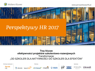 Trzy klucze efektywności projektów szkoleniowo-rozwojowych Transformacja: „OD SZKOLEŃ DLA AKTYWNOŚCI DO SZKOLEŃ DLA EFEKTÓW” Jakie są wyniki firm z Górnego Śląska na tle rynku w 2015? Żeby móc pokazać partnerom biznesowym rentowność inwestycji rozwojowych, trzeba zacząć zupełnie inaczej je realizować Czym jest szkolenie (efektywne biznesowo)? Szkolenie to zaplanowany proces zmiany sposobu działania/zachowania określonej grupy pracowników budowany na bazie uzupełnienia, związanego ze zmianą deficytu kompetencyjnego, w zakresie postaw, wiedzy i umiejętności ludzi dający ostatecznie identyfikowalne korzyści biznesowe firmie Najważniejszy jest łańcuch przyczynowo-skutkowy szkolenia IMPACT CHAIN – ŁAŃCUCH WPŁYWU 1. Uczestnicy reagują pozytywnie na szkolenie rozumiane, jako zmiana pokazując tym samym swoją motywację do wejścia w nią 2. Uczestnicy zdobywają nowe umiejętności, poszerzają posiadaną już wiedzę oraz definiują zmianę nawyków (postawy) i sposobu pracy nad nimi 3. Uczestnicy zmieniają sposób wykonywania zadań na stanowisku pracy na efektywniejszy, wykorzystując nowe kompetencje uzyskane podczas szkolenia 4. Rezultaty efektywniejszego sposobu pracy zostają zmierzone, jako rezultaty biznesowe 5. Zostaje wygenerowany wskaźnik zwrotu z inwestycji KLUCZ 1 - Analiza potrzeby szkoleniowej NASTAWIONA na „smartne cele na kirkpatricku” Schemat U – ogólny algorytm do analizowania potrzeb szkoleniowych Poziom potrzeb szkoleniowych Cele szkolenia Poziom oceny efektywności 4 Potrzeby poprawy biznesu Cele związane z wynikami biznesowymi Wyniki biznesowe 4 3 Potrzeby zmiany zachowania w miejscu pracy Cele związane ze zmianami zachowania w pracy Praca 3 Cele dydaktyczne Nauka 2 Cele związane z reakcją uczestników Reakcja 2 1 Potrzeby zwiększenia umiejętności i wiedzy Potrzeby optymalnego wykonania 1 Przykładowa formatka do określania celów szkolenia Poziomy według modelu Donalda Kirkpatricka (poziom dydaktyczny w trzech obszarach kompetencyjnych: wiedza, umiejętności, postawy) Specyfikacja Merytoryczna Zlecenia Przedmiotowe cele szkolenia Do opisania według czterech poziomów modelu Kirkpatrick'a. Poziom dydaktyczny rozbity został na trzy kategorie kompetencyjne. Sugerujemy opisywanie celów zgodnie z zasadą SMART. Poziom efektów biznesowych Poziom zmiany zachowań na stanowisku pracy wiedza Poziom zmiany kompetencji w trakcie szkolenia umiejętności postawy Poziom reakcji uczestników Metoda pomiaru KLUCZ 2 – Proces szkoleniowy NASTAWIONY na wdrażanie i ewaluacje Model 10-etapowego Procesu Szkolenia 1. Analiza potrzeby szkoleniowej 2. Zdefiniowanie celów szkolenia 3. Decyzja co do typu szkolenia 4. Planowanie i projektowanie szkolenia oraz procesu oceny 5. „Odprawa” przed szkoleniem 6. Realizacja programu szkoleniowego 7. Stworzenie i zatwierdzenie planu działań wdrożeniowych (PDW) 8. Wdrożenie uzyskanej wiedzy i umiejętności 9. Analiza skuteczności wdrożenia 10. Ocena realizacji celów – wyliczenie rentowności Model 10-etapowego Procesu Szkolenia Analiza potrzeby szkoleniowej Definiowanie celów szkoleniowych Decyzja co do typu szkolenia Projektowanie szkolenia oraz procesu oceny Odprawa przed szkoleniem Realizacja programu szkoleniowego Stworzenie i zatwierdzenie planu działań wdrożeniowych Wdrożenie rozwiniętych kompetencji na stanowisku pracy Analiza skuteczności wdrożenia Ocena realizacji celów – wyliczenie rentowności Model 10-etapowego Procesu Szkolenia dynamika symbolicznego wymiaru finansowego PLN opłacalność absorpcja G B wydawanie A 1 2 3 4 5 6 7 8 9 10 CZAS KLUCZ 3 – Motywacja partnerów szkoleniowych NASTAWIONA na osobistą odpowiedzialność Model Kwintetu Szkoleniowego zarząd / naczelna kadra kierownicza uczestnik szkolenia menedżer szkoleń / szkoleniowiec kierownik liniowy – klient wewnętrzny dostawca klient zewnętrzny wykonawca - (trener wewnętrzny / firma szkoleniowa) Główne różnice między szkoleniem „tradycyjnym”, a „SEB-owym” Szkolenie realizowane tradycyjnie Szkolenie realizowane w standardzie SEB • Akcent na jakość realizacji zajęć dydaktycznych • Akcent na efektywność biznesową projektu • Cele szkolenia ogólne i głównie w odniesieniu do kompetencji • Cele szkolenia SMART i w odniesieniu do wszystkich poziomów Kirkpatricka • Analiza potrzeby szkoleniowej nastawiona na identyfikacje luki kompetencyjnej i uwarunkowań dla atrakcyjnych zajęć • Analiza potrzeby szkoleniowej wychodząca od potrzeby biznesowej i rozpoznająca zależności między korzyściami biznesowymi i zachowaniami • Negocjacje stawki za wykonanie zajęć (dzień szkoleniowy) • Negocjacje partnerskie z możliwością succes fee od efektu biznesowego • Ocena efektywności głównie w oparciu o ankietę poszkoleniową, oceniającą głównie jakość zajęć • Ocena szkolenia bazuje na oszacowaniu ROI lub ocenie efektywności i skuteczności biznesowej • Uczestnik rzadko może liczyć na realne wsparcie ze strony swojego przełożonego w stosowaniu nowych kompetencji • Uczestnik „kontraktuje” ze swoim przełożonym pracę nad zmianą sposobu działania i poprawą swoich wyników pracy w oparciu o nowe kompetencje • Brak możliwości oceny wpływu szkolenia na rezultaty biznesowe szkolenia • Ocena wpływu szkolenia na rezultaty biznesowe szkolenia relatywnie łatwa i „automatyczna” • Ciężar odpowiedzialności za efekty szkolenia spoczywa na trenerze i HR • Ciężar odpowiedzialności za efekty szkolenia spoczywa na uczestniku i jego przełożonym • Uczestnik w małym stopniu lub wcale nie świadom tego, co ma dać szkolenia firmie • Uczestnik w pełni świadom tego, co ma się zmienić w efekcie szkolenia i jakie są oczekiwania wobec niego • Brak lub śladowe działania wdrażania kompetencji po zajęciach dydaktycznych już w pracy • Zaplanowana i zarządzana faza wdrażania kompetencji po zajęciach na stanow