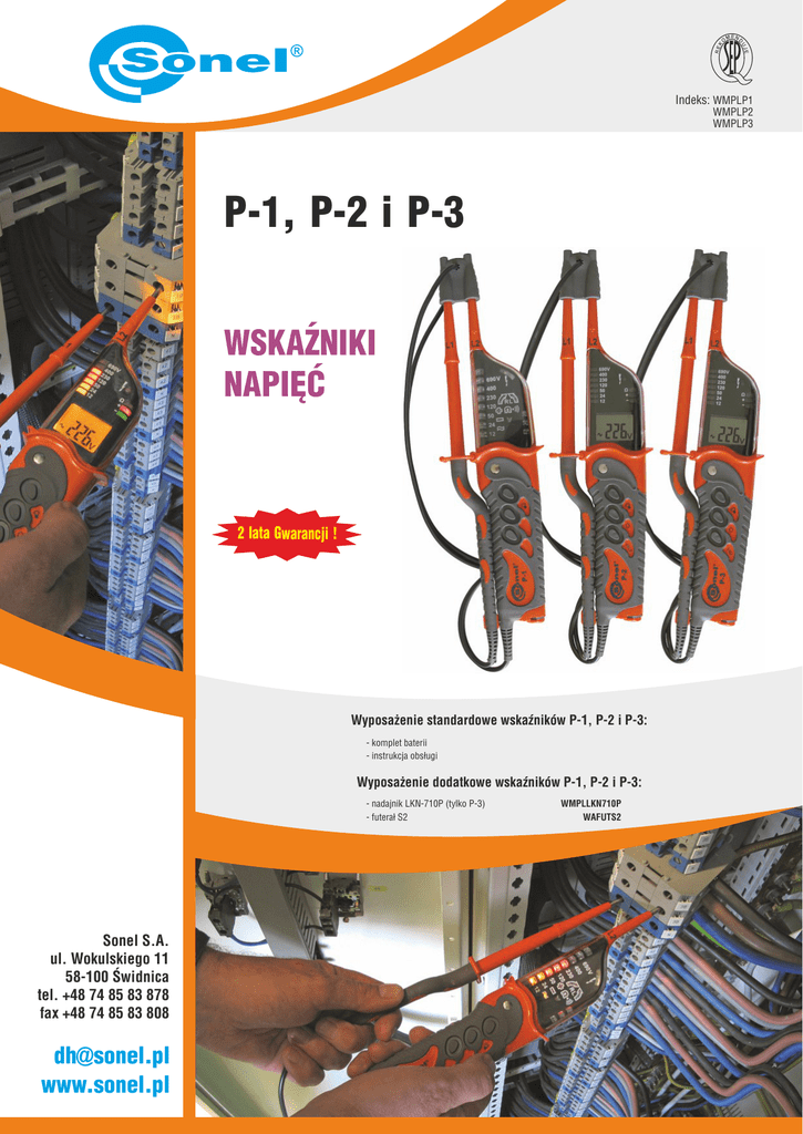 Indeks: WMPLP1 WMPLP2 WMPLP3 P-1, P-2 i P-3 WSKAŹNIKI NAPIĘĆ 2 lata Gwarancji ! Wyposażenie standardowe wskaźników P-1, P-2 i P-3: - komplet baterii - instrukcja obsługi Wyposażenie dodatkowe wskaźników P-1, P-2 i P-3: - nadajnik LKN-710P (tylko P-3) - futerał S2 Sonel S.A. ul. Wokulskiego 11 58-100 Świdnica tel. +48 74 85 83 878 fax +48 74 85 83 808 [email protected] www.sonel.pl WMPLLKN710P WAFUTS2 P-1 P-2 i P-3 Wskazywanie napięć stałych i przemiennych: Wskazywanie i pomiar napięć stałych i przemiennych: - na linijce diodowej (bargraf): 12, 24, 50, 120, 230, 400, 690V (działa również bez baterii), - wskazywanie na linijce diodowej (bargraf): 12, 24, 50, 120, 230, 400, 690V (działa również bez baterii), - określenie napięcia: przemiennego lub polaryzacji stałego. Badanie ciągłości obwodu: - sygnalizacja dla rezystancji <400kΩ. - wyświetlanie wyniku pomiaru na ekranie LCD, - określenie napięcia: przemiennego lub polaryzacji stałego. Pomiar rezystancji i badanie ciągłości obwodu: Wskaźnik wirowania faz: - wskazania kolejności faz dla napięcia >100V. - wyświetlanie wyniku pomiaru na ekranie LCD, Jednobiegunowe oznaczenie fazy: - sygnalizacja dla rezystancji <400kΩ. - wskazanie przy pomocy elektrody dotykowej, Wskaźnik wirowania faz: - sygnalizacja optyczna i akustyczna dla napięcia >50V. - wskazania kolejności faz dla napięcia >100V. Test wyłącznika różnicowoprądowego: - test wyłączników o IΔn ≤100mA. Końcówki pomiarowe Ø2mm/4mm. Podświetlenie miejsca pomiaru. Przyrządy spełniają wymagania norm PN-EN 61010, IEC/EN 61243-3 EMC. Jednobiegunowe oznaczenie fazy: - wskazanie przy pomocy elektrody dotykowej, - sygnalizacja optyczna i akustyczna dla napięcia >50V. Test wyłącznika różnicowoprądowego: - test wyłączników o IΔn ≤100mA. Identyfikacja i uzgadnianie fazy (tylko P-3): - określenie fazy w danym punkcie w odniesieniu do innego, Czy wiesz że... Nadajnik LKN-710P obecnie znajduje się standardowo w zestawie LKZ-710 ? - możliwość określania fazy w danym punkcie z użyciem dodatkowego nadajnika - brak ograniczenia czasowego związanego z synchronizacją sieci elektrycznej. Końcówki pomiarowe Ø2mm/4mm. Podświetlenie miejsca pomiaru. Funkcja „HOLD” - zatrzymanie wyniku pomiaru (tylko P-2). Przyrząd spełnia wymagania norm PN-EN 61010, IEC/EN 61243-3 EMC. Pomiar napięcia stałego i przemiennego Błąd podstawowy Błąd podstawowy (AC) (DC) Zakres Rozdzielczość 6,0...49,9V 0,1V ±(3% w.w. +4 cyfry) 50...750V 1V ±(2% w.w. +3 cyfry) ±(3% w.m. + 3 cyfry) Pomiar rezystancji Zakres Rozdzielczość Błąd podstawowy 0...1999Ω 1Ω ±(3% w.m. + 8 cyfr) Skrót „w.m.” oznacza „wartość mierzoną wzorcową”. Bezpieczeństwo elektryczne: - rodzaj izolacji - kategoria pomiarowa - stopień ochrony obudowy wg PN-EN 60529 Nadajnik LKN-710P - wyposażenie dodatkowe do wskażnika P-3, zalecane do identyfikacji fazy. podwójna, zgodnie z PN-EN 61010-1 III 1000V (IV 600V) wg PN-EN 61010-1 IP65 Pozostałe dane techniczne: - zasilanie miernika baterie alkaliczne LR03 (rozmiar AAA) (2 szt.) - szybkość reakcji wskaźnika <0,1s - zakres częstotliwości dla jednobiegunowego wskaźnika fazy 50...400Hz - dokładność wskazań napięcia wg PN-EN 61243-3 Nominalne warunki użytkowania: - temperatura pracy - częstotliwość pracy dla wskazań napięcia - maksymalny prąd pomiarowy -10...+55°C 15...400Hz IS<0,2A/IS(5s)<3,5mA Zawartość niniejszego folderu nie stanowi oferty w rozumieniu prawa i jest publikowany dla celów informacyjnych bez odpowiedzialności prawnej. v.2