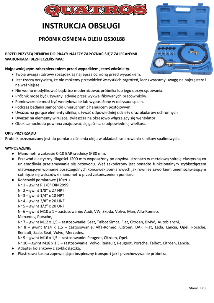 instrukcja obsługi próbnik ciśnienia oleju qs30188