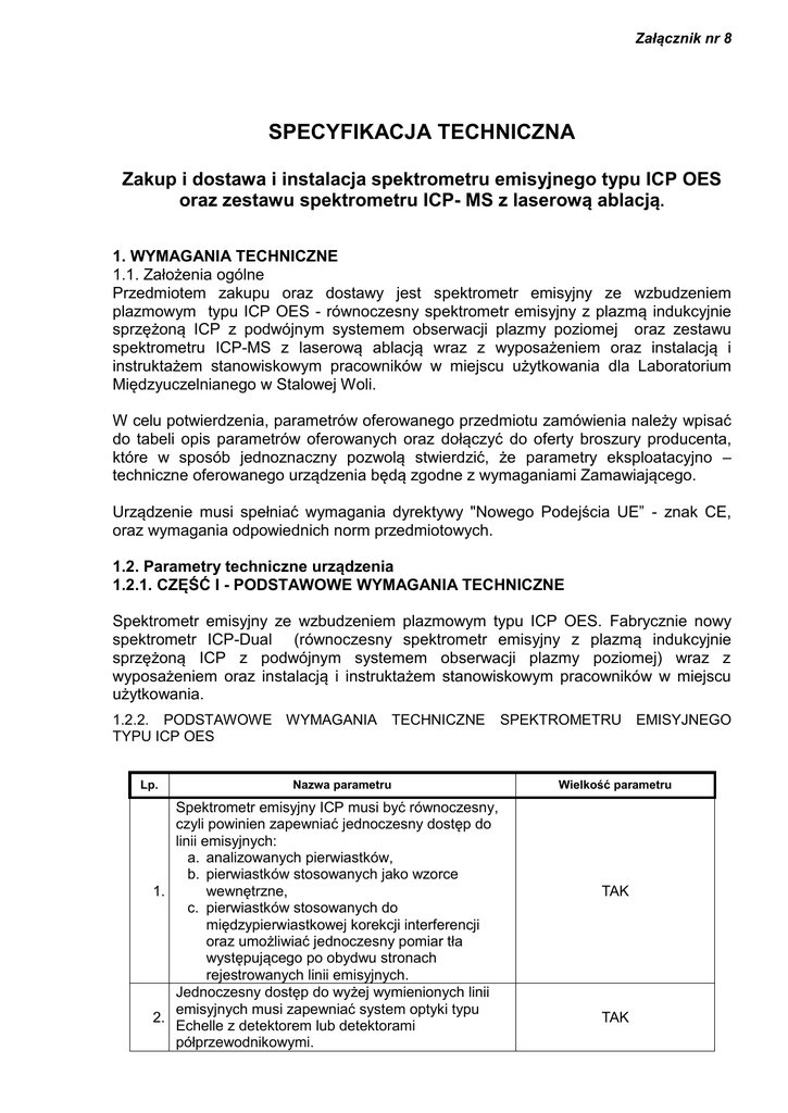 Specyfikacja techniczna, załącznik nr 8