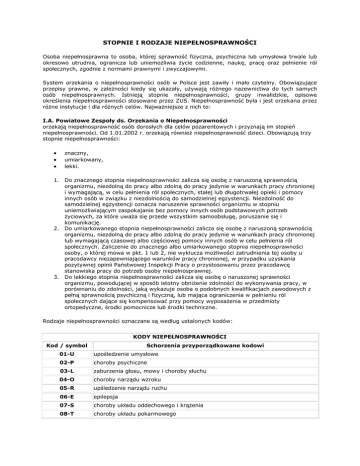 STOPNIE I RODZAJE NIEPEŁNOSPRAWNOŚCI