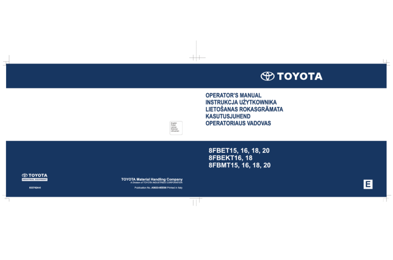 Please read this manual thoroughly even though you may already be familiar with other Toyota industrial vehicles
