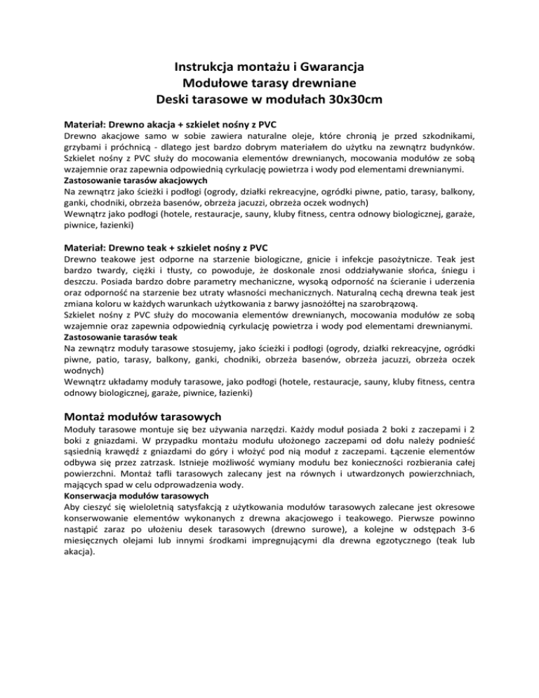 Instrukcja montażu i Gwarancja Modułowe tarasy