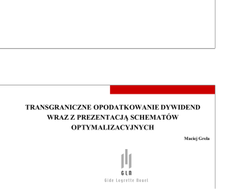TRANSGRANICZNE OPODATKOWANIE DYWIDEND WRAZ Z PREZENTACJĄ SCHEMATÓW OPTYMALIZACYJNYCH Maciej Grela ZAKRES PREZENTACJI Omówienie ogólnych zasad opodatkowania dywidend. Omówienie przykładowych schematów optymalizacyjnych związanych z wypłatą dywidend. Analiza klauzuli „rzeczywistego właściciela” dywidendy (beneficial owner) i jej znaczenia w międzynarodowym planowaniu podatkowym. ŹRÓDŁA PRAWA Ustawa z dnia 15 lutego 1992 roku o podatku dochodowym od osób prawnych (dalej „Ustawa o CIT”); Ustawa z dnia 26 lipca 1991 roku o podatku dochodowym od osób fizycznych (dalej „Ustawa o PIT”); Zawarte przez Polskę umowy międzynarodowe w sprawie unikania podwójnego opodatkowania (tworzone w oparciu o Modelową Konwencję OECD w Sprawie Podatku od Dochodu i Majątku, dalej jako „Modelowa Konwencja OECD”); Dyrektywa 90/435/EWG z dnia 23 lipca 1990 r. o wspólnym systemie opodatkowania stosowanym w przypadku spółek dominujących i spółek zależnych różnych Państw Członkowskich (dalej jako „Dyrektywa 90/435/EWG”) REŻIMY OPODATKOWANIA DYWIDEND Zasadniczo można wyróżnić trzy podstawowe reżimy opodatkowania dywidend: Objęcie dywidend systemem zwolnień z opodatkowania wynikającym z Dyrektywy 90/435/EWG (implementowanej do polskich krajowych przepisów podatkowych). Objęcie dywidend preferencyjnym systemem opodatkowania wynikającym z zawartych przez Polskę umów w sprawie unikania podwójnego opodatkowania. Objęcie dywidend „nie-preferencyjnym” krajowym reżimem opodatkowania (w przypadku braku możliwości zastosowania jednego z powyższych reżimów). KRYTERIA RÓŻNICUJĄCE OPODATKOWANIE DYWIDEND Kryterium statusu i formy prawnej odbiorcy dywidendy – osoby fizyczne, osoby prawne (w tym spółki kapitałowe). Kryterium rezydencji podatkowej (siedziby / miejsca zamieszkania) podmiotów wypłacających i otrzymujących dywidendę. Ewentualna możliwość objęcia wypłaty dywidendy systemem zwolnień wynikającym z Dyrektywy 90/435/EWG ze względu na zlokalizowanie stron transakcji w krajach UE, EOG lub Szwajcarii. Ewentualna możliwość objęcia wypłaty dywidendy systemem wynikającym z umów o unikaniu podwójnego opodatkowania. opodatkowania Kryterium wysokości bezpośredniego udziału kapitałowego. Kryterium istotne z perspektywy Dyrektywy 90/435/EWG i części umów o unikaniu podwójnego opodatkowania (np. umowa polsko-francuska z 1977 roku). Kryterium okresu posiadania bezpośredniego udziału kapitałowego w odpowiedniej wysokości. Kryterium istotne z perspektywy Dyrektywy 90/435/EWG. ZWOLNIENIE Z OPODATKOWANIA DYWIDEND (1) Łączne warunki zwolnienia z opodatkowania: Spółka wypłacająca i spółka będąca beneficjentem dywidendy mają siedzibę w Polsce, państwie członkowskim UE, państwie należącym do EOG lub w Konfederacji Szwajcarskiej. Faktycznym odbiorcą dywidend może być zarówno uprawniona spółka, jak i jej zagraniczny zakład. Bezpośredni udział spółki będącej beneficjentem dywidendy w kapitale spółki wypłacającej dywidendę wynosi nie mniej niż 10% (do końca 2008 r. w przypadku wypłaty dywidendy przez polską spółkę – nie mniej niż 15%), a w przypadku Konfederacji Szwajcarskiej – nie mniej niż 25% . Minimalny dwuletni okres posiadania udziałów w spółce wypłacającej dywidendę przez spółkę-beneficjenta (nie musi być spełniony w chwili wypłaty, pod warunkiem że docelowo okres ten przekroczy dwa lata); (efekt implementacji Dyrektywy 90/435/EWG do polskich przepisów – art. 20 ust. 3-14 oraz art. 22 ust. 4-6 Ustawy o CIT) ZWOLNIENIE Z OPODATKOWANIA DYWIDEND (2) Formalne warunki zwolnienia: Udokumentowanie dla celów podatkowych miejsca siedziby spółki będącej odbiorcą dywidendy certyfikatem rezydencji podatkowej otrzymanym od uprawnionej spółki. Certyfikat rezydencji – jest to zaświadczenie o miejscu zamieszkania / siedziby podatnika dla celów podatkowych wydane przez właściwy organ administracji podatkowej państwa miejsca zamieszkania / siedziby podatnika (art. 5a pkt 21 Ustawy o PIT oraz art. 4a pkt 12 Ustawy o CIT) Udokumentowanie stosownym zaświadczeniem organów podatkowych istnienia zagranicznego zakładu, w przypadku gdy to zakład jest odbiorcą dywidendy. OPODATKOWANIE DYWIDEND – OGÓLNE ZASADY Z MODELOWEJ KONWENCJI OECD (1) Modelowa Konwencja OECD wprowadza możliwość opodatkowania dywidendy podatkiem dochodowym w państwie odbiorcy jak również podatkiem u źródła przez państwo z którego wypłacana jest dywidenda (dywidenda wraz z odsetkami i należnościami licencyjnymi jest jednym z tzw. dochodów biernych). Zgodnie z postanowieniami Modelowej Konwencji OECD, w przypadku wypłaty dywidendy podatek w państwie źródła nie może przekroczyć: 5% kwoty dywidendy brutto, jeśli podmiotem uprawnionym jest spółka (inna niż osobowa) posiadająca udział w kapitale spółki wypłacającej wynoszący co najmniej 25%; 15% kwoty dywidendy brutto w pozostałych przypadkach. OPODATKOWANIE DYWIDEND – OGÓLNE ZASADY Z MODELOWEJ KONWENCJI OECD (2) Zastosowanie stawki podatku wynikającej z właściwej umowy o unikaniu podwójnego opodatkowania albo niepobranie podatku zgodnie z taką umową jest możliwe pod warunkiem udokumentowania dla celów podatkowych miejsca zamieszkania / siedziby odbiorcy uzyskanym od tego podmiotu certyfikatem rezydencji. Regulacje Modelowej Konwencji OECD przewidują możliwość odliczania podatku od dywidendy zapłaconego w państwie źródła, jednakże w wysokości nie przekraczającej kwoty podatku państwa rezydencji odbiorcy, która przypadałaby na dywidendę przed dokonaniem odliczenia. OPODATKOWANIE DYWIDENDY ZGODNIE Z PRZEPISAMI KRAJOWYMI (1) Dywidenda wypłacana przez polskie spółki jest opodatkowana 19% podatkiem, potrącanym przez wypłacającą spółkę działająca w tym zakresie w charakterze płatnika. (art. 22 ust. 1 oraz art. 26 ust.1 i ust. 2 - 3b Ustawy o CIT oraz art. 30a ust. 1 pkt 4 Ustawy o PIT)