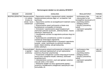 Harmonogram działań na rok szkolny 2016/2017