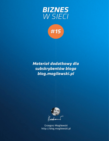BIZNES W SIECI #15 Materiał dodatkowy dla subskrybentów bloga blog.mogilewski.pl Grzegorz Mogilewski http://blog.mogilewski.pl KONWERSJA, ANGAŻOWANIE ORAZ CELE WITRYNY Mariusz Gąsiewski www.ittechnology.us Podstawowym elementem prawidłowej analizy używalności i użyteczności (przyjazności witryny dla użytkownika) witryny jest odpowiedzenie sobie na proste pytanie: Co jest głównym celem mojej strony internetowej? Pytanie jest dość proste, ale sama odpowiedź na nie bywa najczęściej bardzo trudna. Rozwinięciem odpowiedzi na te pytanie powinny być ustalenia dotyczące dwóch kolejnych zagadnień: a) co tak naprawdę jest wyznacznikiem sukcesu mojej strony internetowej (co mogę uznać za parametr określający dobry rozwój mojej strony internetowej – czy jest to liczba Unikalnych użytkowników, liczba Odwiedzin, liczba sprzedanych produktów) b) jaką wymierną wartość ma ten wyznacznik sukcesu na mojej witrynie (jaką konkretną wartość ma dla mnie wcześniej określony parametr) Z jednej strony znalezienie takich czynników sukcesu na witrynie umożliwia jednoznaczne określenie pożądanego stanu na witrynie (np. zależy mi na jak największej ilości użytkowników to skupiam się na zdobywaniu użytkowników, zależy mi na sprzedaży produktów na witrynie to staram się maksymalnie rozwijać sprzedaż i itp.). Z drugiej zaś określenie wymiernej wartości takich czynników sukcesu pozwala na skuteczne zarządzanie witryną. Każda witryna internetowa jest inna i może mieć nieco inne cele. Grzegorz Mogilewski http://blog.mogilewski.pl Mariusz Gąsiewski www.ittechnology.us -2- Kilka możliwych przykładów celu witryny • Prowadzę bloga poświęconego roślinom storczykowym. Moim głównym celem jest zdobycie jak największej ilości użytkowników, którzy będą czytać mojego bloga. Wyznacznikiem sukcesu mojej strony będzie ilość użytkowników. • Założyłem forum internetowe poświęcone grze Tibia. Moim głównym celem jest stworzenie społeczności, która będzie czynnie angażowała się w wymianę poglądów na temat tej gry, dzieliło się doświadczeniami, wrażeniami. Moim głównym czynnikiem sukcesu będzie lojalność użytkowników, sprowadzana do ilości odsłon i odwiedzin na użytkownika powracającego (oraz liczba użytkowników powracających). • Prowadzę niedużą stronę internetową reklamujące kwatery prywatne pod Zakopanem. Moim celem jest jak najszersza promocja tych kwater prywatnych. Moim czynnikiem sukcesu będą określone ilości zapytań telefonicznych i mailowych o ofertę. • Prowadzę sklep internetowy sprzedający prezenty i upominki. Moim celem jest uzyskiwanie jak największej sprzedaży za pośrednictwem Internetu. Czynnikiem sukcesu mojej witryny jest wartość sprzedaży produktów na witrynie. • Prowadzę bloga firmowego, który jest częścią strategii PR mojej firmy. Poprzez blog chce reklamować i promować wizerunek mojej firmy. Moim czynnikiem sukcesu jest ilość i jakość wzmianek w środkach masowego przekazu i w Internecie stworzonych poprzez moją działalność blogową. • Moja strona ma wspierać użytkowników mojego produktu, kont hostingowych. Poprzez stronę internetową staram się zmniejszyć ilość zapytań telefonicznych i zapytań mailowych o pomoc. Moim wyznacznikiem sukcesu jest spadek ilości zapytań telefonicznych i mailowych (ilość zapytań w stosunku do ilości nowych kont i wartości sprzedaży kont). Współczynnik konwersji Analizując jakość ruchu internetowego na podstawie zaangażowania użytkowników (np. ilości odsłon na użytkownika, ilości odwiedzin na unikalnego użytkownika, średniego czasu spędzonego na stronie i itp) w odniesieniu do poszczególnych kanałów generowania ruchu internetowego bardzo łatwo jest wyciągnąć pochopne wnioski na temat zachowania użytkowników nie mając do dyspozycji mierników wartości ruchu internetowego. Grzegorz Mogilewski http://blog.mogilewski.pl Mariusz Gąsiewski www.ittechnology.us -3- Wartością, którą najczęściej się wykorzystuje do obiektywnej oceny wartości ruchu internetowego jest tak zwany współczynnik konwersji. Wskaźnik, pokazujący procentową liczbę odwiedzin, które zakończyły się ukończeniem zdefiniowanej konwersji to właśnie współczynnik konwersji. Współczynnik konwersji = (liczba konwersji/ogólna liczba odwiedzin) * 100% Śledzenie zaangażowania konsumenta przed konwersją Przedsiębiorcy i marketingowcy poświęcają dużo uwagi śledzeniu sprzedaży i konwersji. Mało interesują się za to mierzeniem aktywności konsumentów, poprzedzających tę konwersję. Tak jak niewiele kobiet zgodzi się na małżeństwo na pierwszej randce, tak samo niewielu klientów zdecyduje się na zakup produktu czy usługi przy pierwszym kontakcie z naszą firmą. Przed wykonaniem konwersji czy dokonaniem zakupu klienci wykonują wiele dodatkowych aktywności, dzięki którym powoli poznają naszą firmę i jej ofertę. Są to swego rodzaju pośrednie etapy konwersji takie jak: zapoznanie się z ofertą, przejście na podstronę Kontakt naszej strony internetowej, zapisanie się na newsletter. Mierząc te pośrednie etapy możemy analizować, jakie elementy w naszej ofercie, strategii promowania firmy sprawiają, że użytkownicy zatrzymują się na tych pośrednich aktywnościach i nie dochodzą do ostatecznej konwersji. Grzegorz Mogilewski http://blog.mogilewski.pl Mariusz Gąsiewski www.ittechnology.us -4- Pomysły na mierzenie etapów pośrednich konwersji Wśród pośrednich etapów konwersji, które możemy mierzyć wśród naszych klientów mogą być między innymi: • • • • • • • • • • • • • • • • • • • • • odwiedziny podstrony “Oferta” w naszej witrynie odwiedziny podstrony “Kontakt” w naszej witrynie zapoznanie się z opisem firmy na podstronie “O firmie” odwiedziny podstrony “Rekomendacje” na witrynie internetowej sko