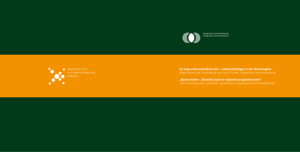 Integracja via kompetencję Integration via Kompetenz Es mag unterschiedlich sein – Leben(s)(Wege) in der Grenzregion Begleitband zur Ausstellung und zum Projekt „Integration via Kompetenz“ „Bywa różnie – (Ścieżki) życia w regionie przygranicznym” „Tom towarzyszący wystawie i projektowi „Integracja przez kompetencję” Das Projekt wird aus Mitteln des Europäischen Fonds für Regionale Entwicklung im Rahmen des Operationellen Programms zur grenzübergreifenden Zusammenarbeit Polen (Wojewodschaft Lubuskie) – Brandenburg 2007-2013, Small Project und Netzwerkprojektefonds der Euroregion Pro Europa Viadrina gefördert Grenzen überwinden durch gemeinsame Investition in die Zukunft Projekt współfinansowany ze środków Europejskiego Funduszu Rozwoju Regionalnego w ramach Programu Operacyjnego Współpracy Transgranicznej Polska (Województwo Lubuskie) – Brandenburgia 2007-2013, Fundusz Małych Projektów i Projekty Sieciowe Euroregionu Pro Europa Viadrina oraz z budżetu państwa Es mag unterschiedlich sein – Leben(s)(Wege) in der Grenzregion Begleitband zur Ausstellung und zum Projekt „Integration via Kompetenz“ „Bywa różnie – (Ścieżki) życia w regionie przygranicznym” „Tom towarzyszący wystawie i projektowi „Integracja przez kompetencję” Titel // Tytuł: „Es mag unterschiedlich sein – Leben(s)(Wege) in der Grenzregion“ // „Bywa różnie – (Ścieżki) życia w regionie przygranicznym” - Begleitband zur Ausstellung und zum Projekt „Integration via Kompetenz“ // Tom towarzyszący wystawie i projektowi „Integracja przez kompetencję” Herausgeber // Wydawcy: Dr. Gundula Gwenn Hiller Steffanie Vogler-Lipp Adam Wojtkowski Europa-Universität Viadrina Frankfurt (Oder) Zentrum für Interkulturelles Lernen August-Bebel-Str. 12 15234 Frankfurt (Oder) Wissenschaftliche Leitung // Kierownictwo naukowe: Dr. Gundula Gwenn Hiller Projektkoordination // Koordynacja projektu: Adam Wojtkowski Layout und Fotos // Opracowanie graficzne i zdjęcia:www.quitestudio.com Umschlagsgestaltung // Opracowanie graficzne okładki:www.quitestudio.com Übersetzungen // Tłumaczenia: Ewa Bielewicz-Polakowska, Kamila Chilewski, Marek Kłodnicki und Aleksandra Luczak, Szymon Śliwa und Adam Wojtkowski ISBN: 978-3-00-036190-6 Projektseite // Strona projektu: http://www.europa-uni.de/de/campus/hilfen/interkulturelleslernen/Projekte/integration_via_kompetenz/ index.html Redaktionsschluss // Zamknięcie wydania: Oktober 2011 // Pażdziernik 2011 Danksagung Podziękowania Von Bewilligung des Projektes „Integration via Kompetenz“ Ende 2010 bis zur Realisierung der Wanderausstellung im Oktober 2011 ist kaum ein Jahr vergangen. Die Zeit seither war knapp und intensiv, und dennoch ist es uns mit vereinten Kräften gelungen, das Projekt zu organisieren, durchzuführen und abzuschließen. Der Begleitband zur Ausstellung und zum Projekt wäre ohne die engagierte Unterstützung vieler Beteiligter sowie die äußerst tatkräftige studentische Unterstützung nicht realisierbar gewesen. In erster Linie möchten wir uns ganz besonders bei allen Interviewten bedanken, die uns ihre Lebensläufe anvertraut haben. Ohne sie wäre die Ausstellung nicht zustande gekommen. Darüber hinaus bedanken wir uns bei Dr. Sanna Schondelmayer, die von Anfang an viele gute Ideen zum Projekt beigesteuert hat, und die die Seminare, in deren Rahmen die Studierenden, die eben diese Wanderausstellung konzipiert haben, leitete. Unser Dank geht auch an unsere Trainer, Dr. Cecylia Ignar und Tomasz Lis, die die interkulturellen Workshops in der Grenzregion durchgeführt haben. Und wir danken Dr. Justyna Ruczek für die künstlerische Betreuung der Ausstellung. Des Weiteren danken wir von ganzem Herzen Kamila Chilewski, Gerlinde Feller, Aleksandra Luczak und Anna Lange sowie allen Studierenden, die an der Ideenfindung, Organisation und Durchführung teilgenommen haben. Ganz besonders wollen wir uns auch bei Lena Fleck und Charlotte Steinke bedanken, die sehr viel für die Organisation des Symposiums getan haben. Des Weiteren geht unser Dank an Dr. Cecylia Ignar, die wunderbare Interviewauszüge auch zu diesem Band beisteuerte. Nicht zuletzt wollen wir uns bei der Euroregion PRO EUROPA VIADRINA für die finanzielle und bei den Projektpartnern für die ideelle Unterstützung bedanken. Ohne sie wäre dieser deutsch-polnische Austausch nicht realisierbar gewesen. Od przyznania projektu „Integracja przez Kompetencję” pod koniec 2010 roku do realizacji wystawy objazdowej w październiku 2011 minął prawie rok. Czas ten był krótki i intensywny i mimo to udało nam się zjednoczonymi siłami tenże projekt zorganizować, przeprowadzić i ukończyć. Tom towarzyszący wystawie i projektowi nie zostałby zrealizowany bez wsparcia wielu zaangażowanych osób jak i czynnego wsparcia ze strony studentek i studentów. W pierwszej kolejności chcemy szczególnie podziękować wszystkich osobom, z którymi zostały przeprowadzone wywiady, które powierzyły nam swoje życiorysy. Bez nich wystawa nigdy by nie powstała. Ponadto dziękujemy dr Sannie Schondelmayer, która od samego początku wniosła wiele dobrych pomysłówdo projektu, i która prowadziła właśnie te zajęcia, w ramach których studentki i studenci zaplanowali wystawę. Dziękujemy naszym trenerom, dr Cecylii Ignar i Tomkowi Lisowi, którzy prowadzili warsztaty międzykulturowe w regionie przygranicznym. Dziękujemy również dr Justynie Ryczek za artystyczną opiekę nad wystawą. Poza tym dziękujemy z całego serca Kamili Chilewskiej, Gerlinde Feller, Aleksandrze Luczak i Annie Lange, jak i wszystkich studentkom i studentom, którzy brali udział w szukaniu pomysłów, organizacji i realizacji. Szczególnie chcemy podziękować również Lenie Fleck i Charlotte Steinke, które wiele uczyniły dla organizacji sympozjum. Poza tym dziękujemy dr Cecylii Ignar, która wniosła do tego tomu również wiele cudownych fragmentów wywiadów