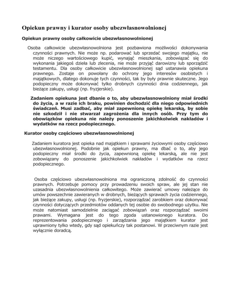 Opiekun prawny i kurator osoby ubezwłasnowolnionej