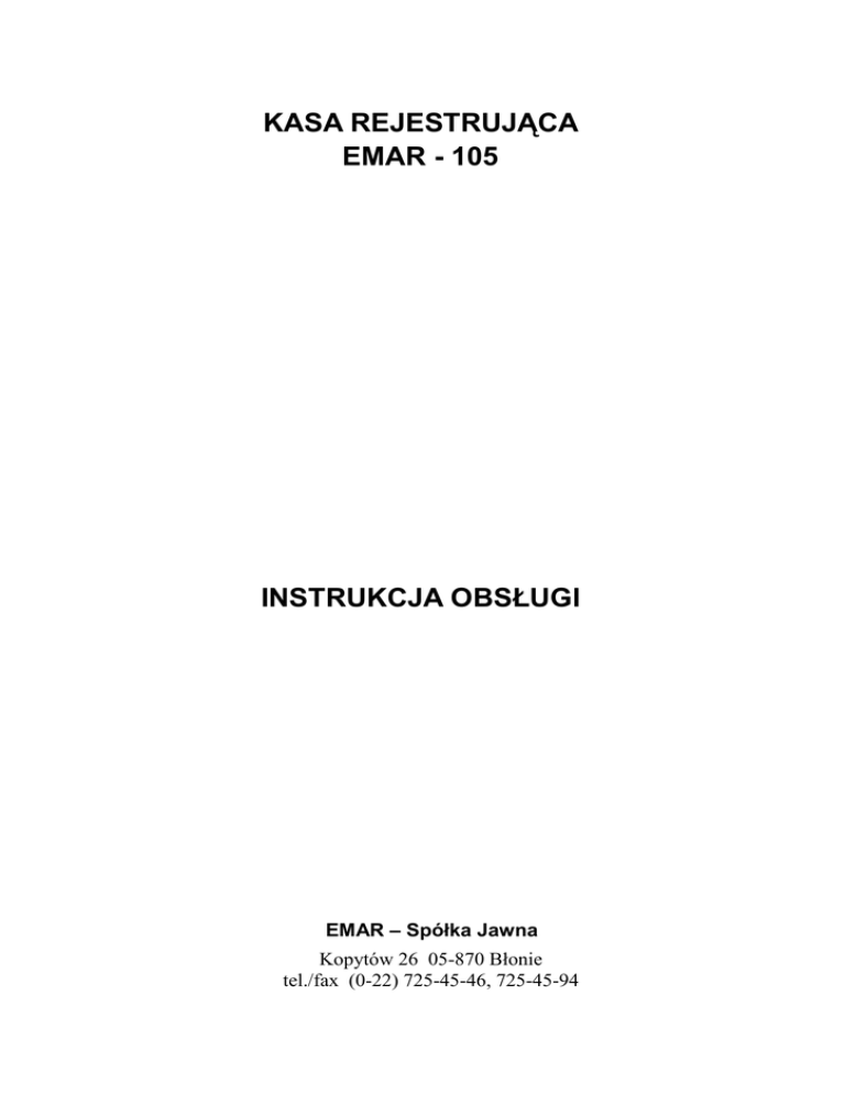 KASA REJESTRUJĄCA EMAR - 105 INSTRUKCJA OBSŁUGI