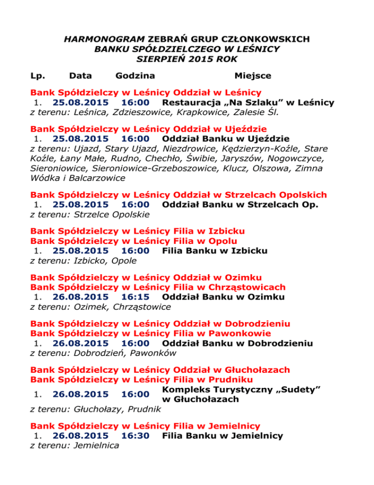 harmonogram zebrań www - Bank Spółdzielczy w Leśnicy