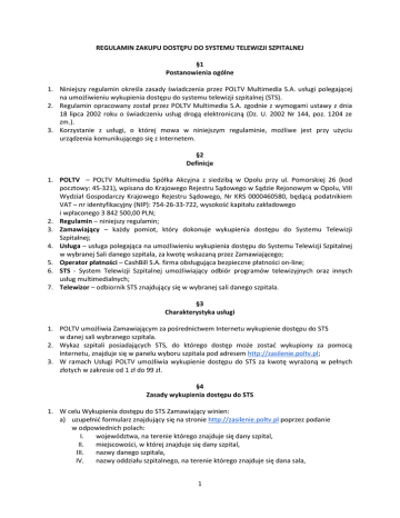 1 REGULAMIN ZAKUPU DOSTĘPU DO SYSTEMU TELEWIZJI