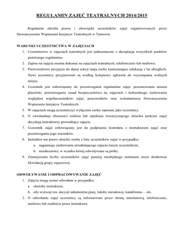 REGULAMIN ZAJĘĆ TEATRALNYCH 2014