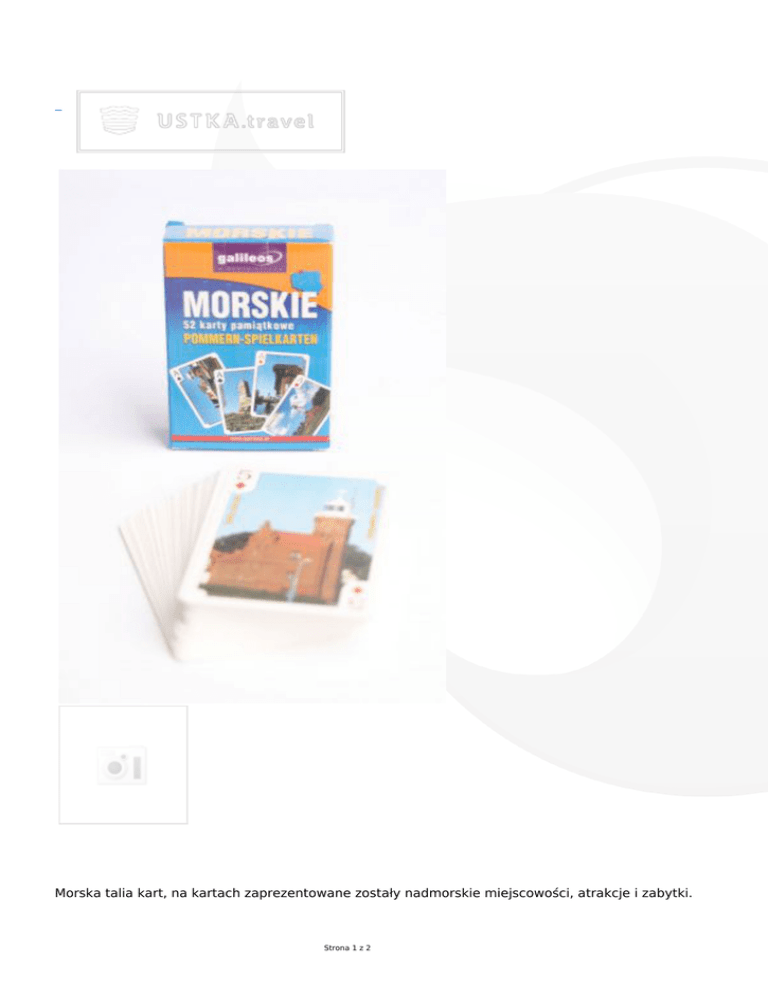 Morska talia kart, na kartach zaprezentowane zostały nadmorskie miejscowości, atrakcje i zabytki. Strona 1 z 2 Strona 2 z 2