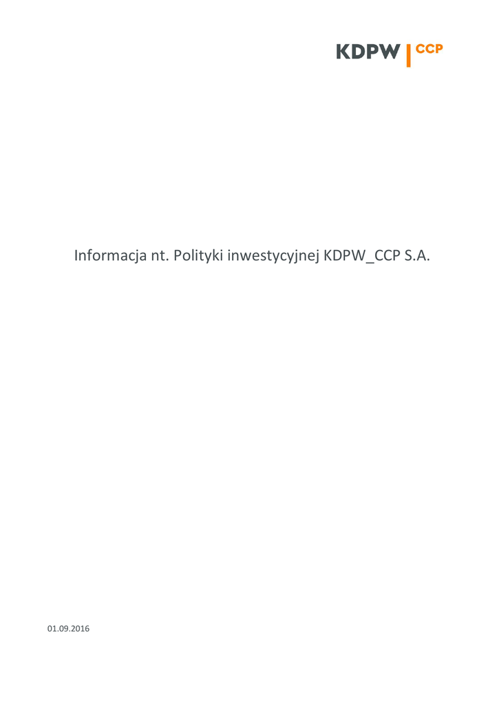 Informacja nt. Polityki inwestycyjnej KDPW_CCP S.A.