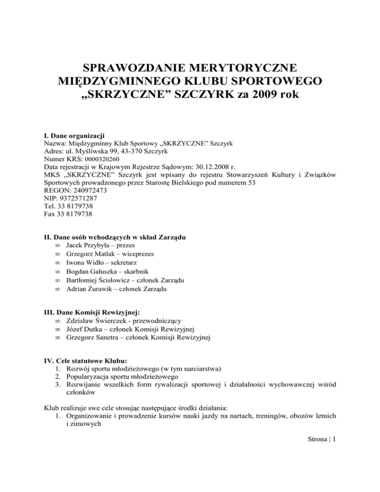 Nazwa: Międzygminny Klub Sportowy „SKRZYCZNE” Szczyrk