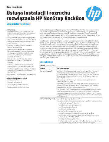 Usługa instalacji i rozruchu rozwiązania HP NonStop BackBox
