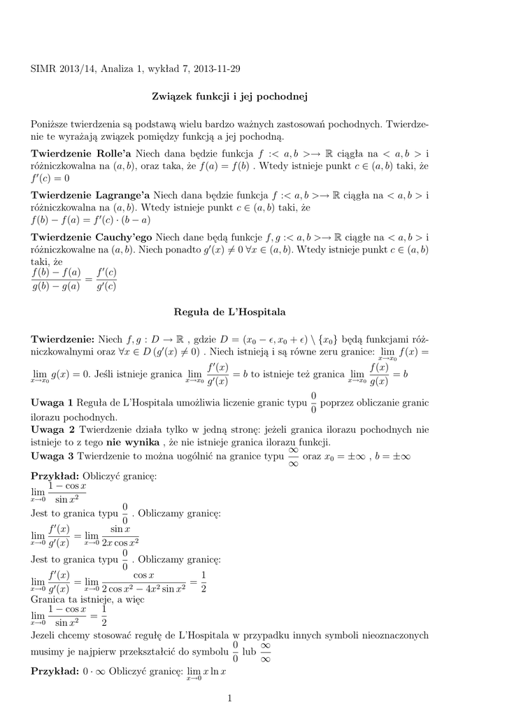 SIMR 2013/14, Analiza 1, wykład 7, 2013-11-29