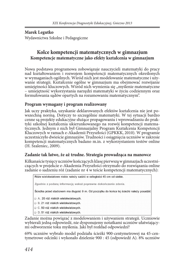 414 Kolce kompetencji matematycznych w gimnazjum