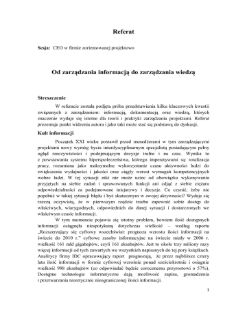 Referat Od zarządzania informacją do zarządzania wiedzą