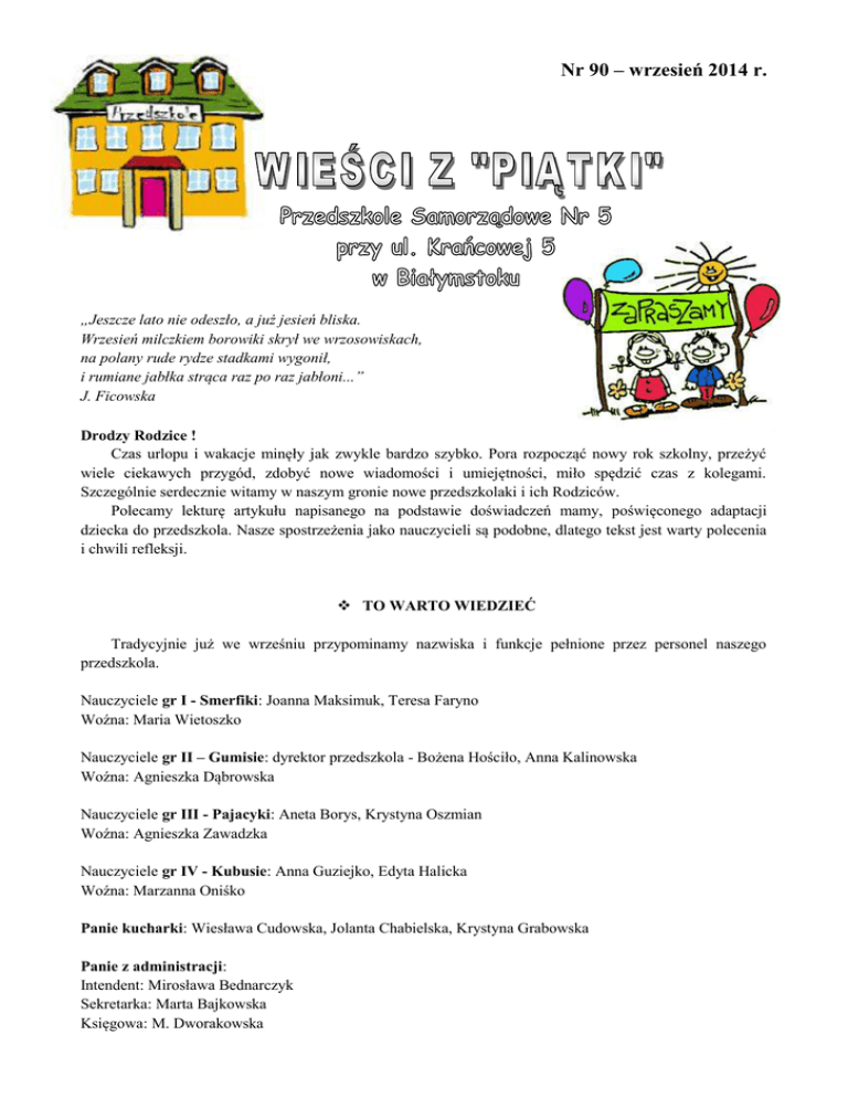 Wrzesień 2014 - Przedszkole Samorządowe Nr 5 w Białymstoku