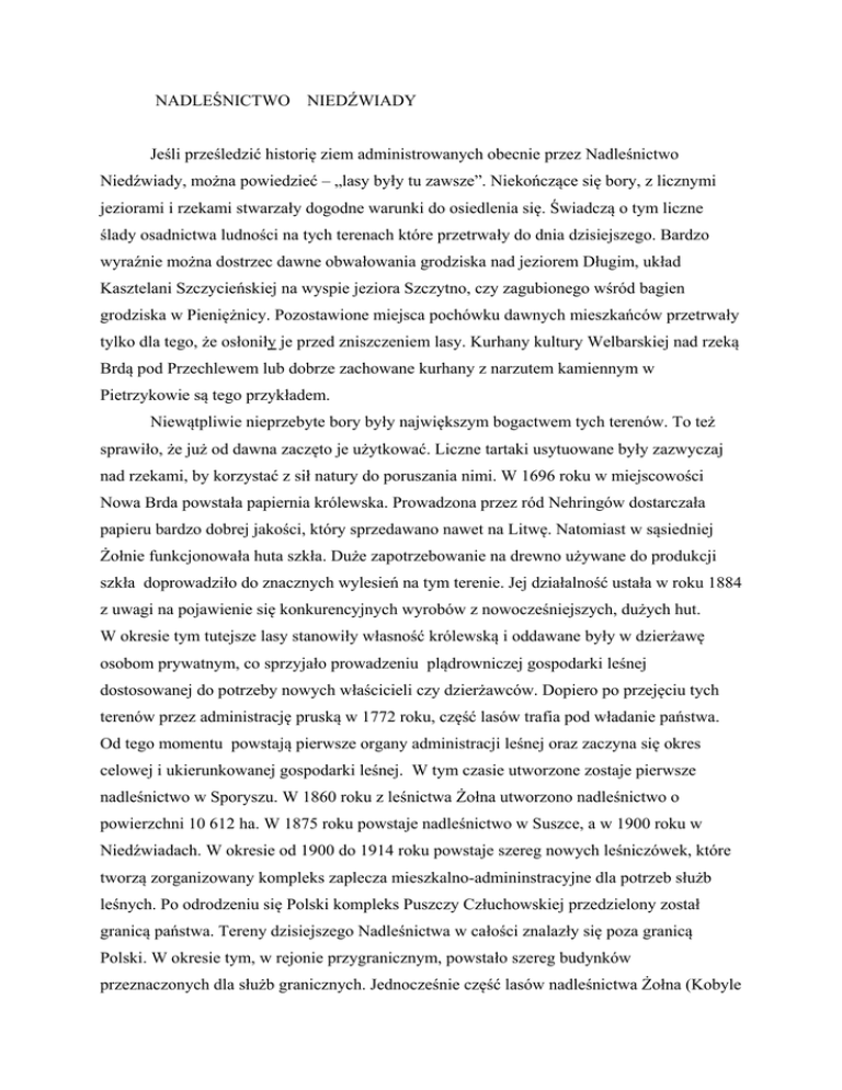 historia nadleśnictwa niedźwiady - Nadleśnictwo Niedźwiady