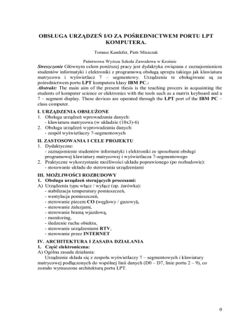 OBSŁUGA URZĄDZEŃ I/O ZA POŚREDNICTWEM PORTU LPT