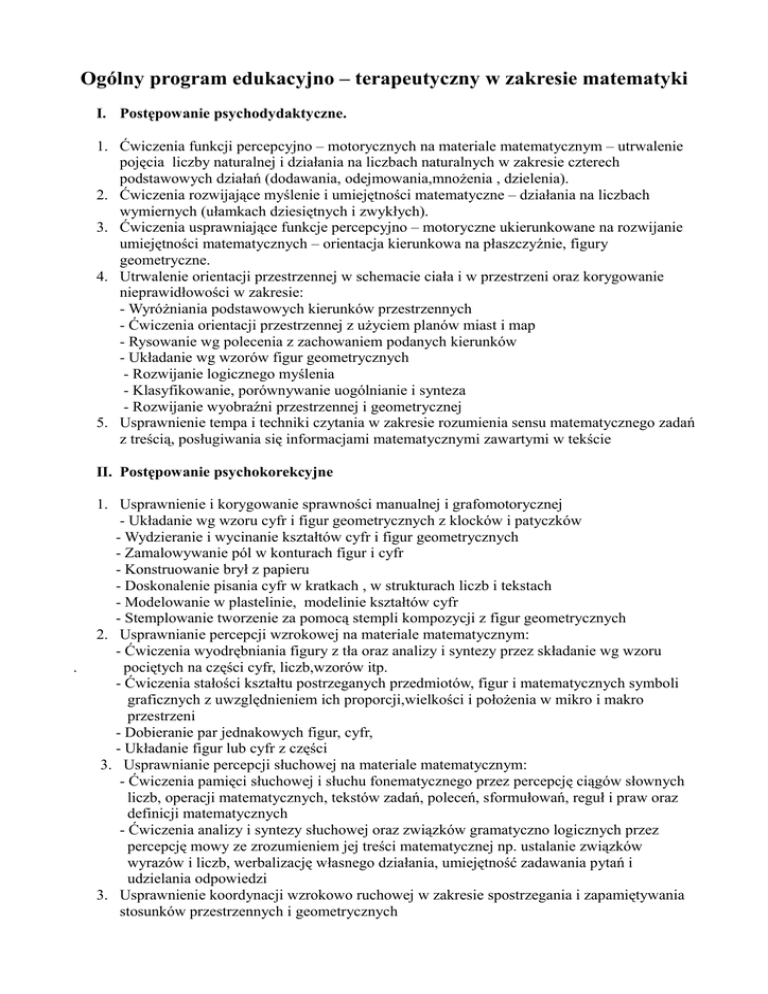 Ogólny program edukacyjno – terapeutyczny w zakresie matematyki