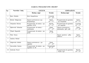 ZAJĘCIA POZALEKCYJNE 2016/2017 Lp. Nazwisko i imię LICEUM