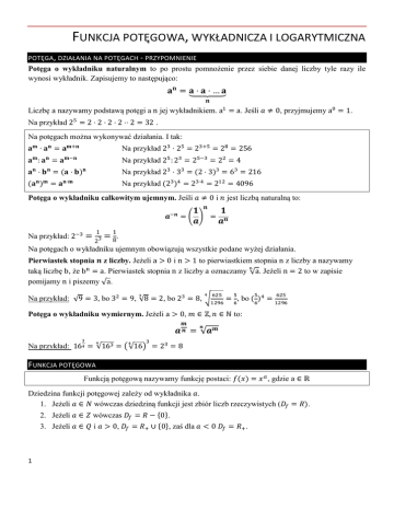 FUNKCJA POTĘGOWA, WYKŁADNICZA I LOGARYTMICZNA