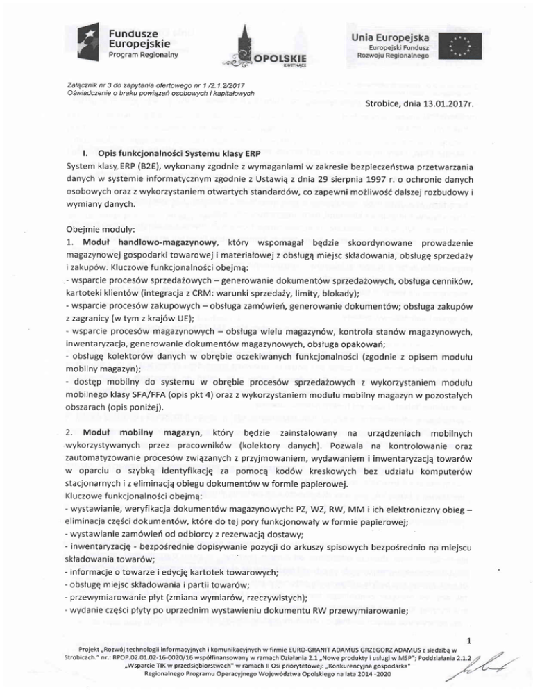 Opis funkcjonalno5ciSystemu klasy ERP