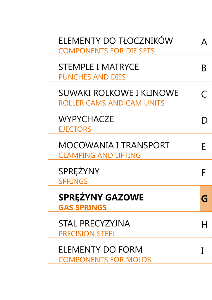 SPIS TREŚCI – SPRĘŻYNY GAZOWE