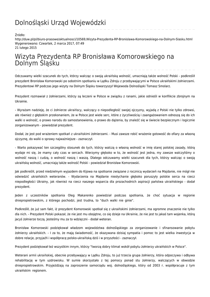 Dolnośląski Urząd Wojewódzki Wizyta Prezydenta RP Bronisława